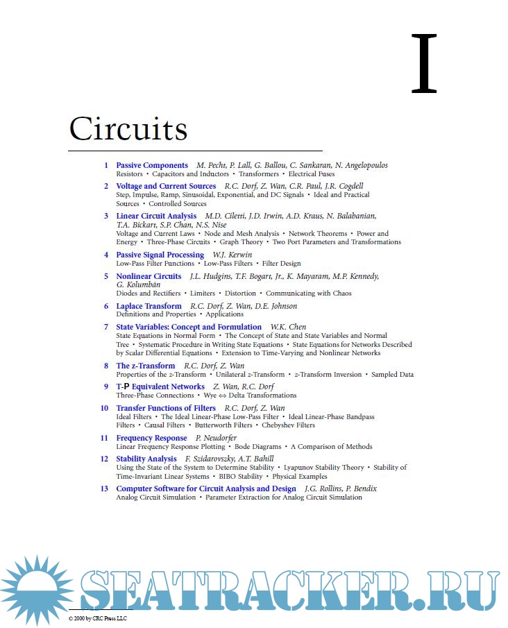 Year: 2000 Language: english Author: Ed. Richard C. Dorf Genre: Textbook Publisher: CRC Press LLC Format: PDF Quality: eBook Pages count: 2801 Description: This section provides a brief review of the definitions and fundamental concepts used in the study of linear circuits and systems. We can describe a circuit or system, in a broad sense, as a collection of objects called elements (components, parts, or subsystems) which form an entity governed by certain laws or constraints. Thus, a physical system is an entity made up of physical objects as its elements or components. A subsystem of a given system can also be considered as a system itself. A mathematical model describes the behavior of a physical system or device in terms of a set of equations, together with a schematic diagram of the device containing the symbols of its elements, their connections, and numerical values. As an example, a physical electrical system can be represented graphically by a network which includes resistors, inductors, and capacitors, etc. as its components. Such an illustration, together with a set of linear differential equations, is referred to as a model system.