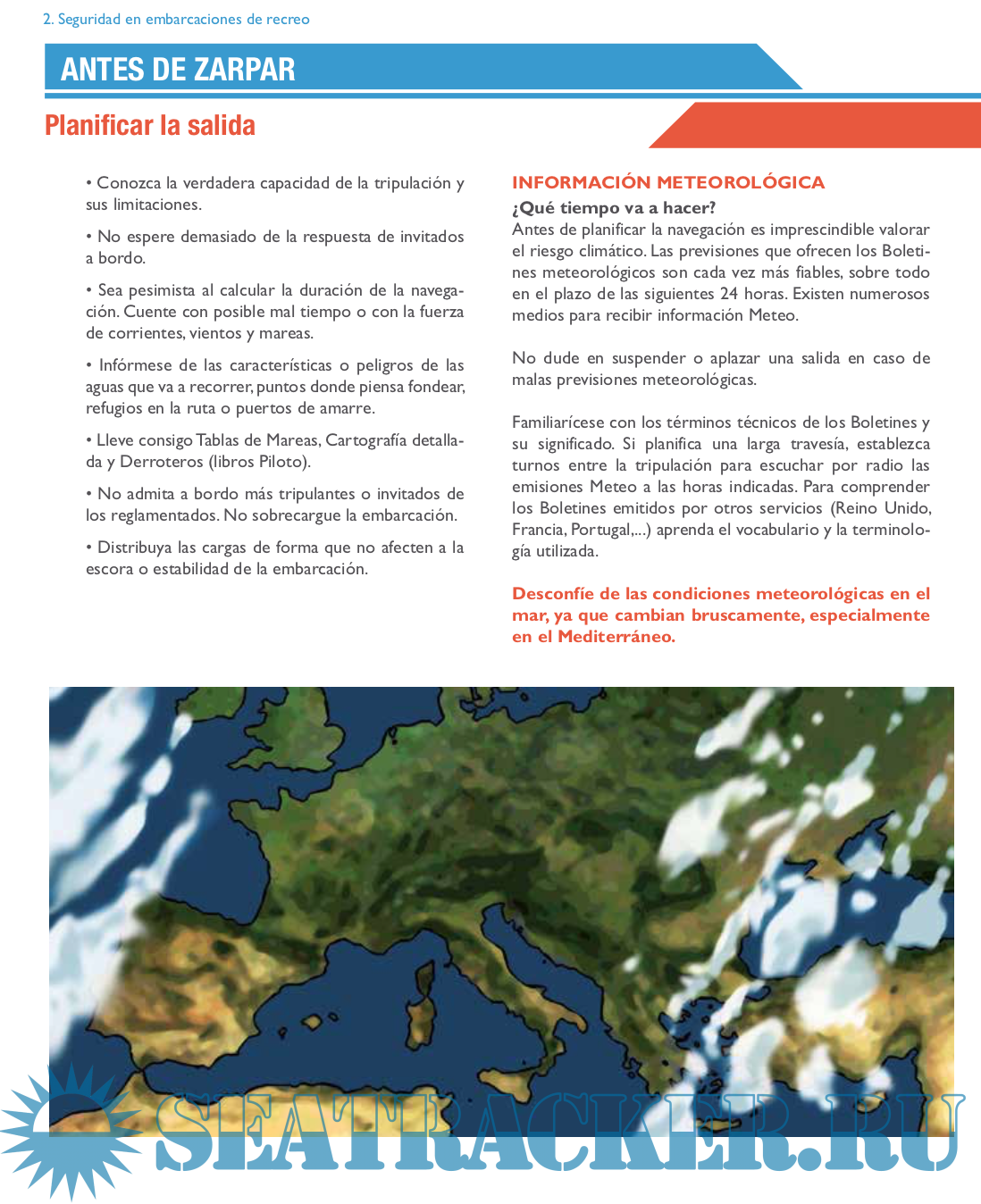 Year: 2019 Language: spanish Author: Salvamento Marítimo Genre: Guide Publisher: Salvamento Marítimo Format: PDF Quality: eBook Pages count: 56 Description: El mar es un impredecible entorno natural. A la vez que grandes satisfacciones, encierra indudables peligros que pueden prevenirse. Prevenir consiste en disminuir los riesgos potenciales sobre nuestra seguridad, reducir las posibilidades de sufrir un accidente o minimizar sus consecuencias. También es tomar conciencia de que siempre puede suceder lo peor y organizarse para no dejar nuestra seguridad en manos de la suerte. Prevenir es prepararse para reaccionar de la mejor forma ante una situación de emergencia, sin olvidar que cualquier accidente es mucho más caro que prevenirlo. Las estadísticas que Salvamento Marítimo elabora anualmente reflejan que más de la mitad de las emergencias marítimas atendidas por el servicio de salvamento se producen en embarcaciones de recreo. Leer con detenimiento esta publicación ayuda a actuar en situaciones comprometidas y saber cómo disminuir los riesgos. Contiene información imprescindible para pedir ayuda, saber cómo actuar al recibirla y cómo prestar auxilio a otros navegantes en apuros. Puede consultar esta guía, así como información complementaria sobre seguridad náutica en la página web de Salvamento Marítimo: www.salvamentomaritimo.es The sea is an unpredictable natural environment. As well as great satisfactions, it contains undoubted dangers that can be prevented. Prevention consists of reducing the potential risks to our safety, reducing the chances of suffering an accident or minimizing its consequences. It is also becoming aware that the worst can always happen and organizing ourselves so as not to leave our safety in the hands of luck. Prevention is preparing to react in the best way to an emergency situation, without forgetting that any accident is much more expensive than preventing it. The statistics that Salvamento Marítimo produces annually show that more than half of the maritime emergencies attended by the rescue service occur in pleasure boats. Reading this publication carefully helps you act in difficult situations and know how to reduce risks. It contains essential information to ask for help, know how to act when receiving it and how to help other sailors in distress. You can consult this guide, as well as additional information on nautical safety on the Salvamento Marítimo website: www.salvamentomaritimo.es