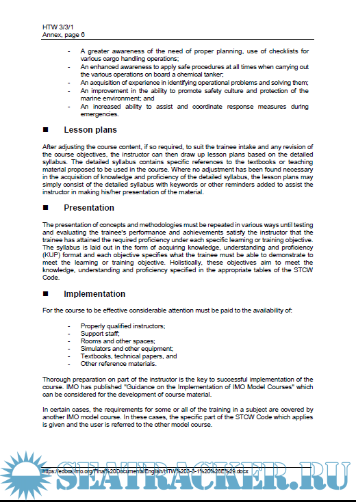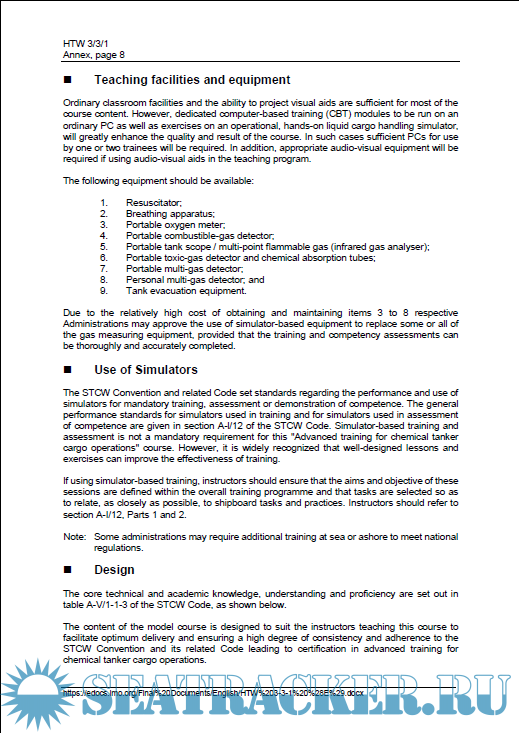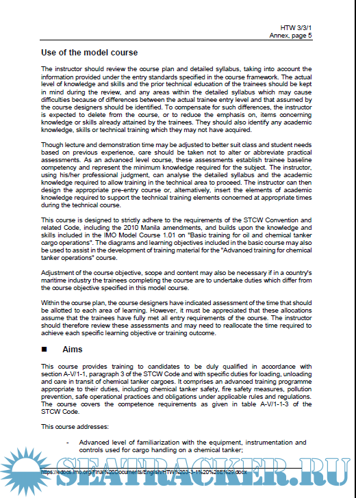 IMO - Model Course 1.03 Advanced Training for Chemical Tanker Cargo Operations