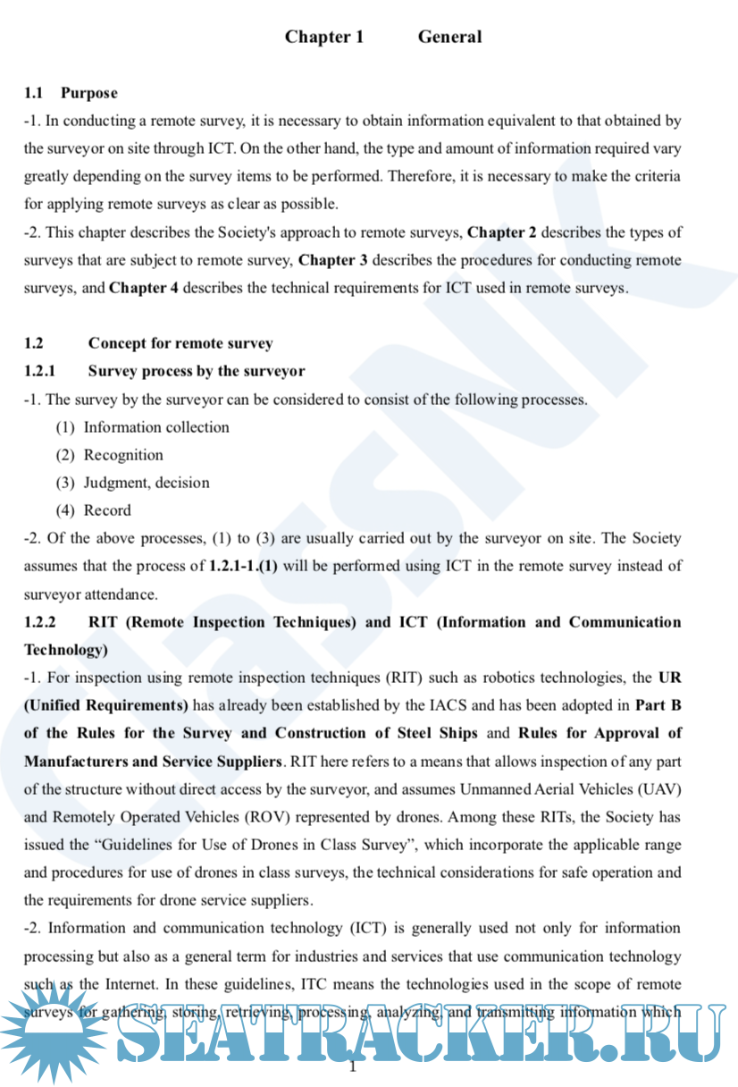 Year: 2021 Language: english Author: ClassNK Genre: Guide Publisher: ClassNk Edition: 3 Format: PDF Quality: eBook Pages count: 18 Description: With the recent trend of the Internet of Things (IoT), digitalization of business is progressing, and communication that utilizes communication technology is also spreading. Based on this situation, the Society has been working on the advancement of surveys using digital technology as research and development in line with the R&D roadmap published in 2017. For remote surveys, the Society has investigated and examined the types of surveys that can be applied, the types and amount of information required for remote surveys, and the requirements for ICT to be used, ensuring reliability equivalent to conventional witness surveys with transparency in the application of remote surveys. These guidelines are a summary of these results. These guidelines will be reviewed as necessary in accordance with the progress of related technology development. In line with the issuance of these guidelines, the related rules and guidance for the survey and construction of steel ships were revised in December, 2019. The rules and guidance for occasional surveys and surveys for equipment to be surveyed under the attendance of surveyors have been revised partly so that remote surveys can be applied when the Society recognizes that the necessary information for the survey can be obtained by using ICT. In accordance with these amendments, remote surveys can be applied for occasional surveys subject to compliance with the requirements of these guidelines in cases where it is difficult to dispatch surveyors of the Society or when survey contents are confirmation of minor damages or defects. The implementation of remote surveys depends on the communication capability of the ship, and cooperation of the crew is indispensable. Therefore, in order to carry out remote surveys effectively and efficiently, the communication capability of the ship and the equipment used for remote surveys should be clarified in advance, and procedures for remote surveys should be provided on board. The Society also made necessary revisions to these guidelines in January 2021 so that the notation “Remote Survey” (abbreviated as RMSV) can be affixed to the classification characters of the ships which are provided with advance preparation for remote surveys. Due to the COVID-19 pandemic since 2020, the Society has carried out a large number of remote surveys. Based on the findings from the experiences, these guidelines were fully reviewed and partly revised, e.g. specifying survey items for which remote survey is applicable, allowing the submission of applications for remote surveys to the Society’s branch offices as well as its head office. It is hoped that these guidelines will contribute to the realization of a more rational survey for ships involved in the maritime industry. Additional info: Older version here: