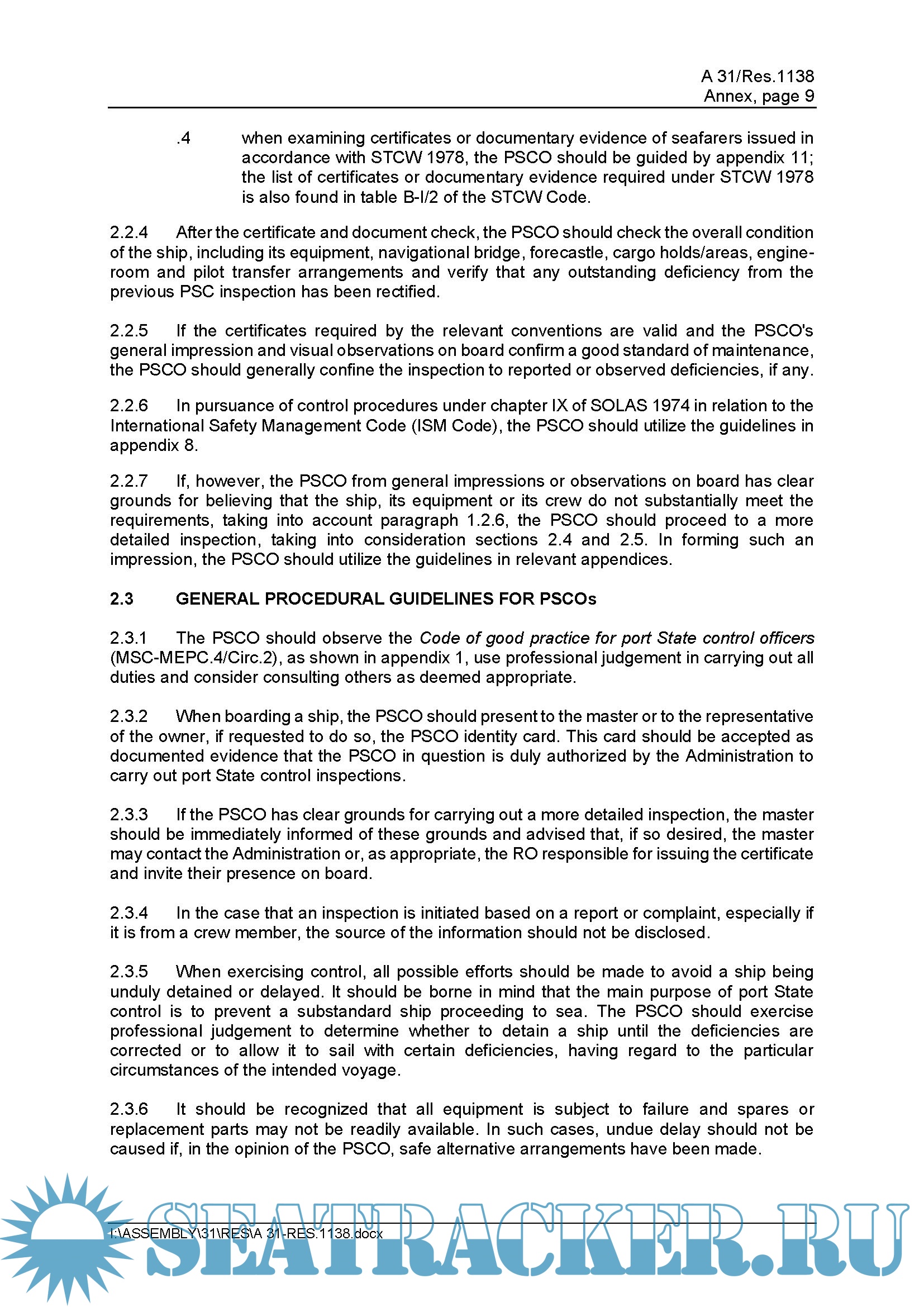 Description: This document is intended to provide basic guidance on the conduct of port State control inspections in support of the control provisions of relevant conventions and parts of the IMO Instruments Implementation Code (III Code) (resolution A.1070(28)) and afford consistency in the conduct of these inspections, the recognition of deficiencies of a ship, its equipment, or its crew, and the application of control procedures.