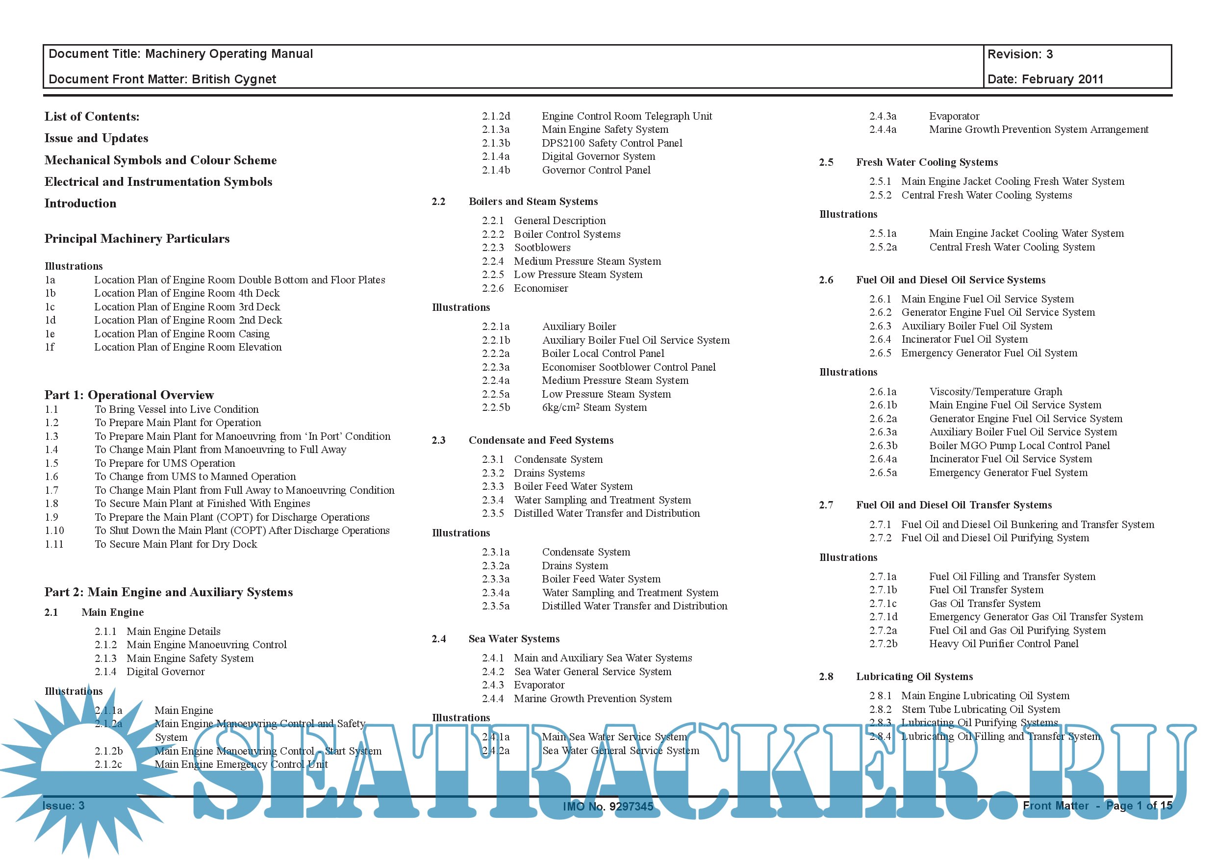 OPT YURI SENKEVICH - IMO 9301419 - Machinery Operating Manual - 352 [2005, PDF]