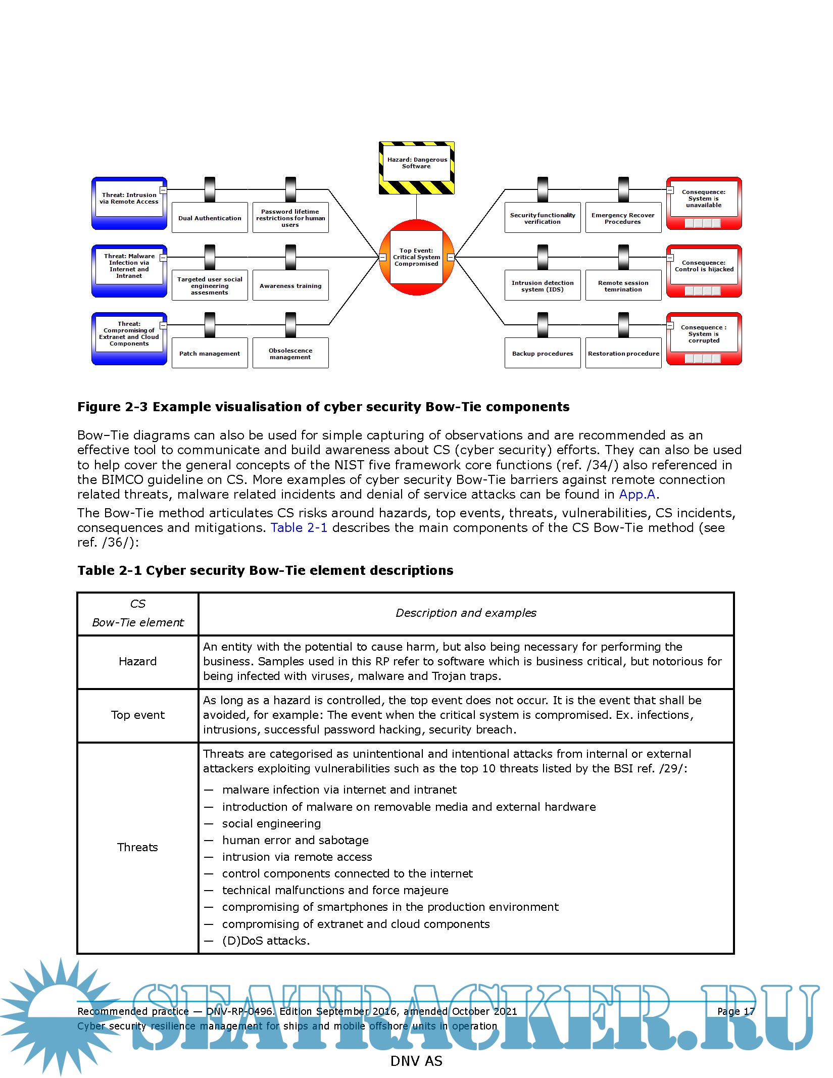 Year: 2021 Language: english Author: DNV Genre: Guide Format: PDF Quality: eBook Pages count: 86 Description: This recommended practice (RP) guides owners, managers and operators of ships and mobile offshore units towards enhanced cyber security of their assets in operation. In addition, this RP is intended to help IT and industrial automation control system professionals to join their efforts towards building and maintaining cyber security resilience of the total set of the assets and processes employed to conduct the company’s business. Following a risk based approach, the decisoins of what is critical and high priority is then left at the discretion of the organisation. Different members of the management team might have different exposure and levels of responsibility towards cyber security. This RP provides practical solutions suited to their different needs, from quick, high level to very technical in depth assessments. Improvements as well as verification and validation activities can be scaled accordingly. This was a new edition in September 2016 and has been amended latest in October 2021. The numbering and/or title of items containing changes is highlighted in red.