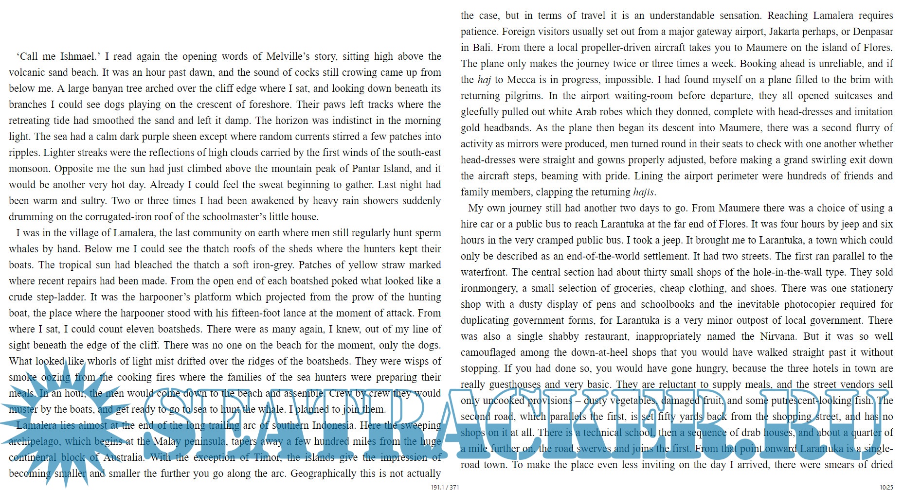To find out, Severin travels to Nuku Hiva in the Marquesas Archipelago where the twenty-one-year-old Melville deserted his whaling ship in 1842 and began to cobble together the legends, tall tales, sea lore and first-hand accounts garnered from the whalers he encountered, filtering all this material through his own fertile imagination to create his monumental novel. It is here that Severin begins to perceive the lush weave of fact and fiction, actual experience and extravagant yarn, which became Moby-Dick.