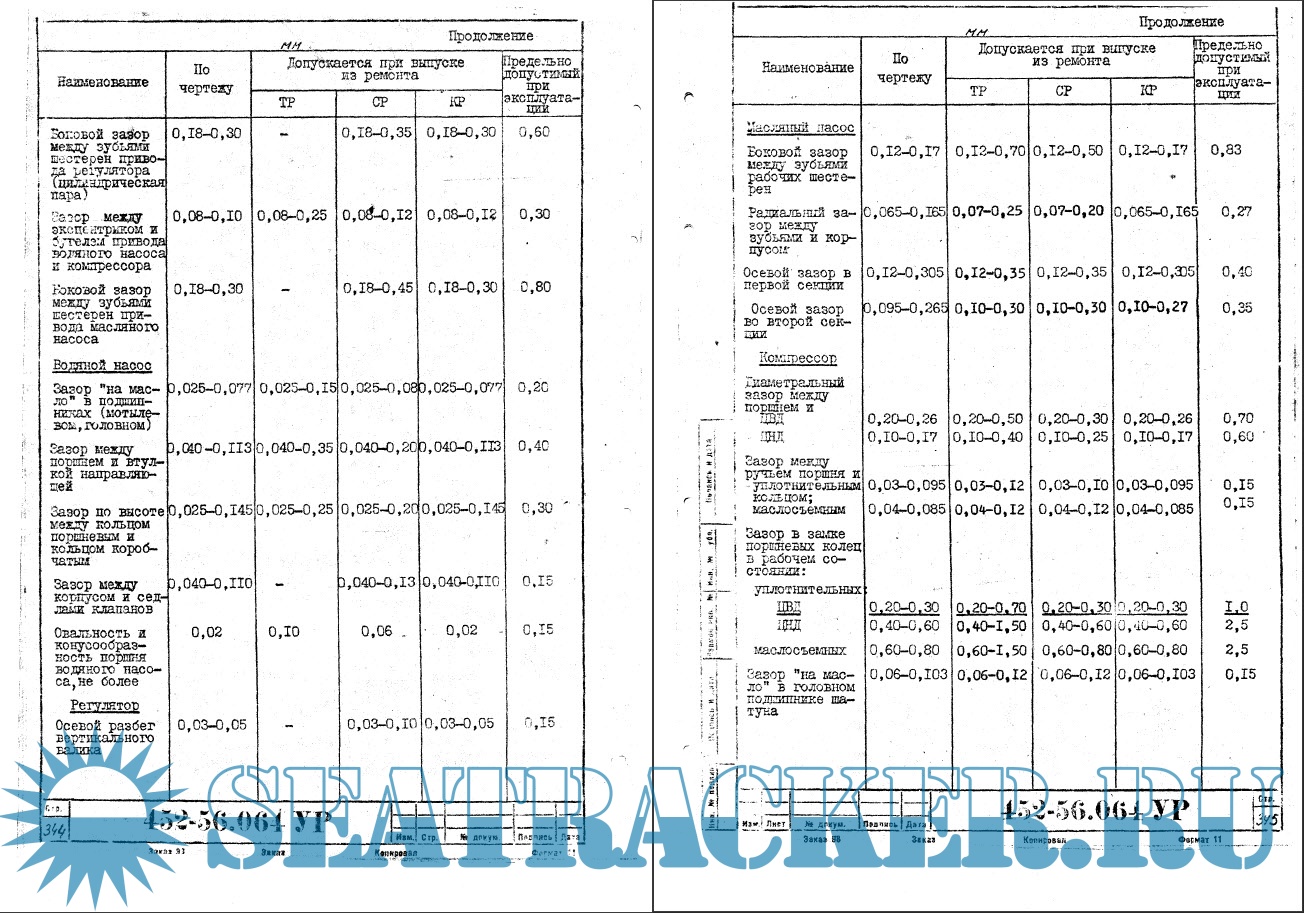 -данные по монтажным и предельно-допускаемым размерам деталей и зазорам в сопряжениях дизеля.