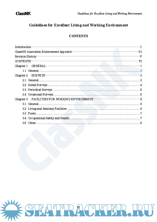Year: 2022 Language: english Author: ClassNK Genre: Normative document Format: PDF Quality: eBook Pages count: 18 Description: This Guidelines will lead to further improvements in the living and working environments on board ships. This Guidelines for Excellent Living and Working Environment (hereinafter referred to as the “Guidelines”) so that the notation “Excellent Living and Working Environment” (abbreviated as ELW) can be affixed to the classification characters of the ships to identify those ships where efforts are being made to improve the living and working environments on board. In addition, as part of the “Innovation Endorsement” a certification service offered by ClassNK to support the spread and development of innovative technologies, this Guidelines also covers advanced initiatives utilising digital technologies and other means for certification.