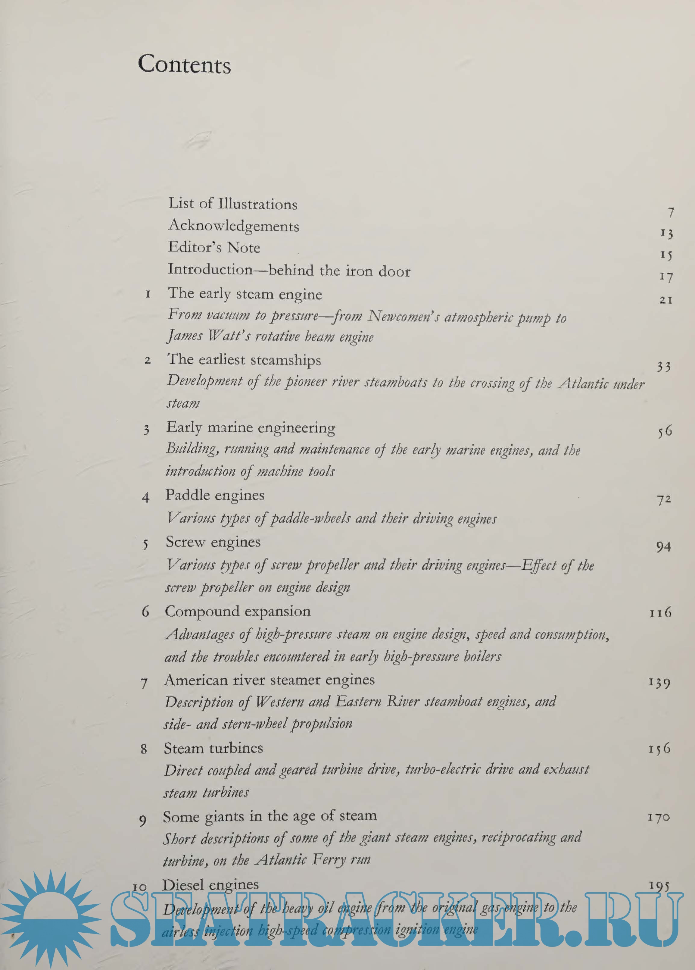 Year: 1971 Language: english Author: John Guthrie Genre: History Publisher: Hutchinson of London Edition: 1st ISBN: 0091082005 Format: PDF Quality: Scanned pages Pages count: 298 Description: First, there were the giant pumping engines whose gently rocking beams were a feature of the nineteenth century landscape. Within a few decades, engines had been developed which were sufficiently small to fit a modest river launch. By the 1830's ocean-going craft had been built, and the first steamships crossed the Atlantic. Separate chapters cover each phase of these earlier periods, and the book continues with the emergence of higher powered engines using steam expansively, to the development of the turbine, the pinnacle of steam power. The diesel engine is discussed, and the story is told of its growth to become the dominant form of propulsion in low and medium powered vessels. The book is well illustrated with material from contemporary sources, and coupled with the author's 40 years of experience as a marine engineer (and the third generation on both sides of his family) the reader can gain a vivid and realistic picture of the people involved with design and operation interwoven with the technical details of the development of the marine engine.