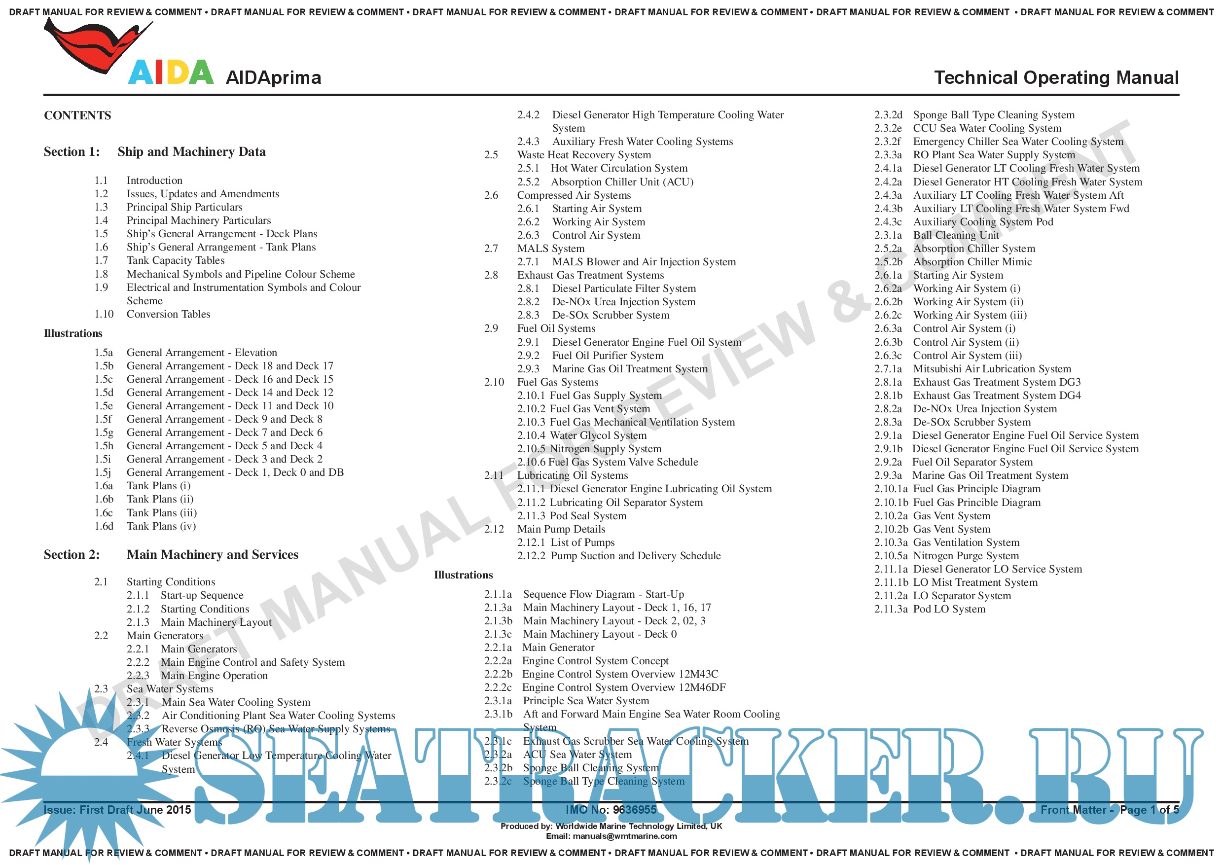 Description: AIDAPRIMA - Passenger (Cruise) Ship - IMO 9636955 - Technical Operating Manual - INDEX
