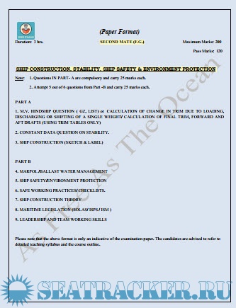 Question Paper Set for Ship Construction, Stability Ship Safety and Environment Protection (August 2022) for Second Mate (F.G.) Mercantile Marine Department (MMD), India Examinations