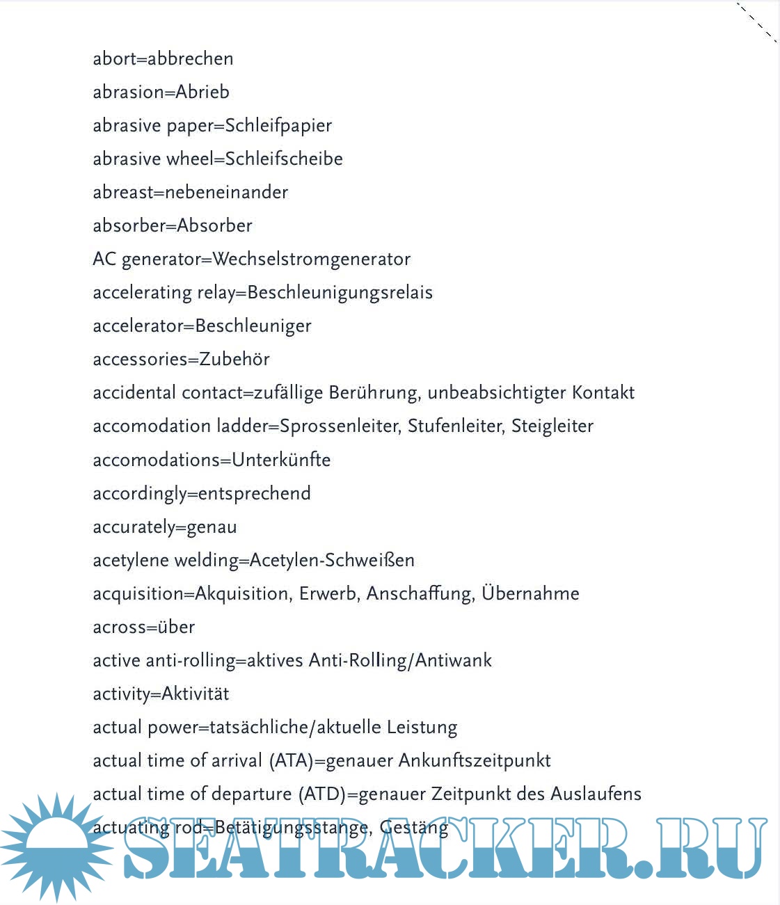 Maritimes Fachwörter-Glossar für Navigation, Schiffstechnik (Schiffsbau, Schiffsingenieurwesen),