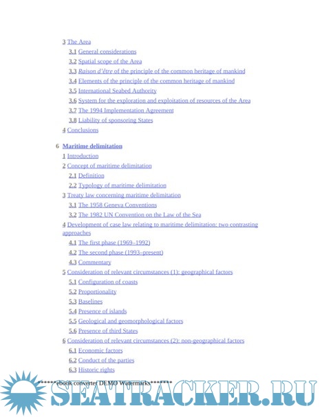 Year: 2015 Language: english Author: Yoshifumi Tanaka Genre: Textbook Publisher: Cambridge University Press Edition: Second ISBN: 978-1-107-08049-9 Format: PDF Quality: eBook Pages count: 1019 Description: This new edition has been fully revised and updated to include the contemporary issues together with new cases delivered by international courts and tribunals, such as the ICJ, ITLOS and Arbitral Tribunals, treaties, UN resolutions, and other instruments. It retains the clear chapter structure of the first edition but has expanded the topics on marine spaces beyond national jurisdiction, maritime delimitation, protection of the marine environment. A new concluding chapter has also been included and presents a perspective on the future development of the international law of the sea. Detailed footnotes and further reading sections, combined with illustrations and tables ensure understanding of the subject. By offering clarity of expression and academic rigour, “The International Law of the Sea” remains the best choice for students.