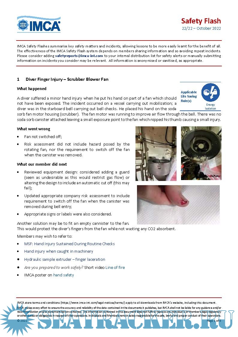 IMCA SF 22/22 Oct 2022• Diver Finger Injury – Scrubber Blower Fan