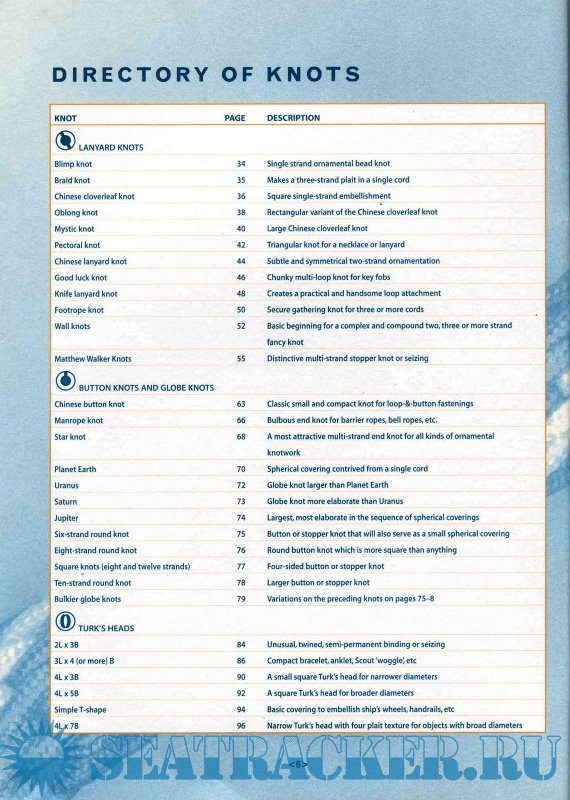 Year: 1998 Language: english Author: Budworth G. Genre: Manual Publisher: Lyons Press Edition: 1st ISBN: 1558217916 Format: PDF Quality: Scanned pages Pages count: 162 Description: A handy guidebook that includes eighty ornamental and useful knots with easy-to-follow; with step-by-step illustrations. All knots serve useful purposes, but many of the more complicated ones also create appealing shapes and interwoven textures. Knot tying is not just for those interested in sailing and other outdoor pursuits; many people find it as absorbing as solving a crossword puzzle or reading a good book. The Complete Book of Decorative Knots contains easy-to-follow expert instruction in how to tie over 80 elaborate knots, ranging form the simple to the more complex.The book is divided into five sections of different elaborate knots - lanyard knots, button knots and globe knots, Turk's heads, mats and hitching, and chains and plaits. Every section contains background information on the history, lore and accreditation of the knots featured. Color illustrations guide you step-by-step through the stages of tying each knot. As well as being attractive, the knots featured have a wide variety of practical uses, such as for hammocks, door mats and bell pulls. A useful glossary explains the terms and techniques used in the world of rope and knot tying.An invaluable source book for both the novice knot tyer and those wishing to expand their expertise, this is the ideal reference for those who wish to pursue this pleasurable craft. (7 3/4 X 10 1/4, 160 pages, photos, color illustrations, charts, icons) Additional info: About the Author Geoffrey Budworth is the co-founder of the International Guild of Knot Tyers. He was responsible for updating the classic knot guide, The Ashley Book of Knots, and is the author of The Complete Book of Knots.