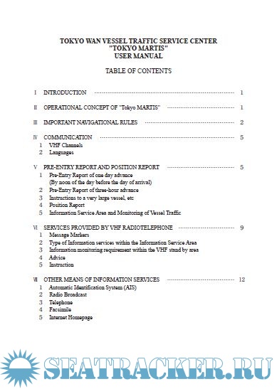This User manual aims at contributing to safe navigation of vessels by explaining about services provided by "Tokyo MARTIS" and essential information while navigating in the Tokyo Bay.