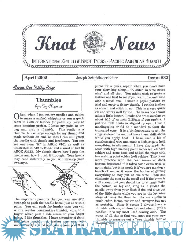 Year: 1997 Language: english Author: IGKT Genre: Periodical (magazine) Publisher: IGKT Format: PDF Quality: Scanned pages Pages count: A lot of Description: Knot News 1997-2015 The journal of the Pacific Americas Branch of IGKT