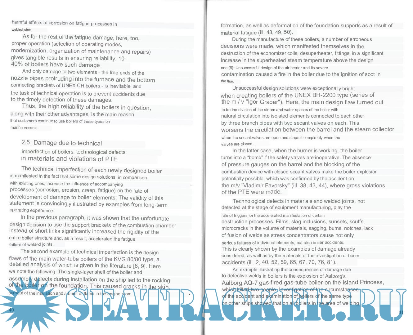 Year: 2007 Language: english Author: N. I, Denisenko, I. I. Kostylev Genre: Textbook Publisher: Elmor Publishing House ISBN: 5-7399-0134-0 Format: PDF Quality: Scanned pages Pages count: 77 Description: The book considers the essence of damage to the elements of ship boiler plants, the main types of damages, the causes of their occurance. A new classification of damage to elements of boiler plants, methods for identifying damage, as well as a technique for assessing the technical condition of the equipment are presented. Equipped with rich illustrative material, the book will be useful to ship mechanics and engineering and technical workers involved in the operation and reair of boiler plants. Additional info: Machine-translated from russian to english for the benefit of the english-speaking members of the forum.