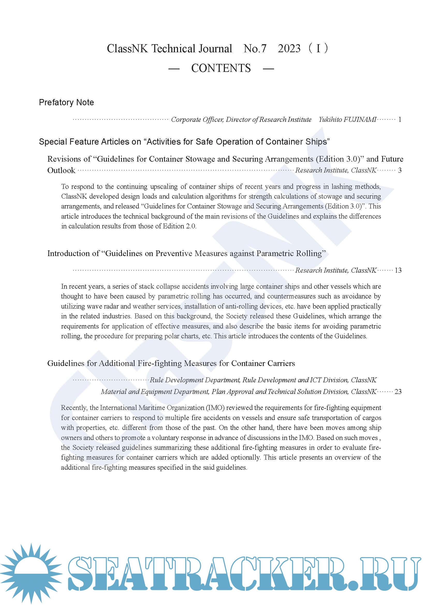 Description: Special Feature of ClassNK Technical Journal No. 7 on “Activities for Safe Operation of Container Ships" issue July, 2023.
