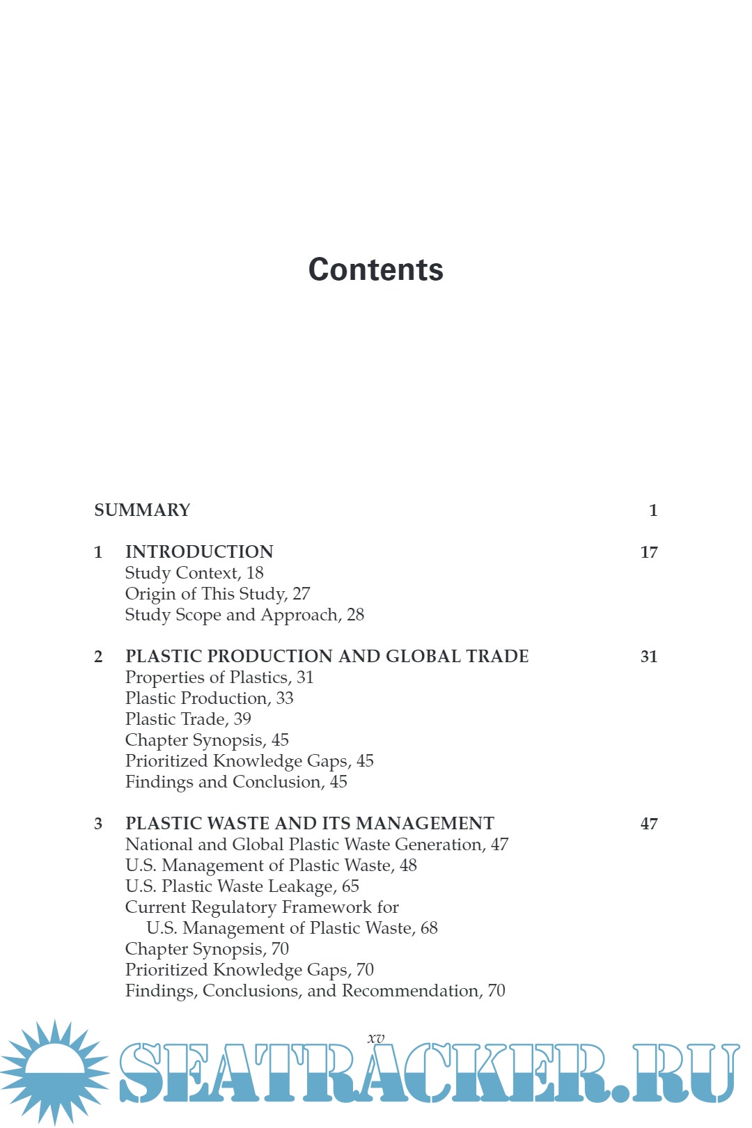 Front Matter Summary 1 Introduction 2 Plastic Production and Global Trade 3 Plastic Waste and Its Management 4 Physical Transport and Pathways to the Ocean 5 Distribution and Fate of Plastic Waste in the Ocean 6 Tracking and Monitoring Systems for Ocean Plastic Waste 7 Interventions for U.S. Contributions to Global Ocean Plastic Waste References Appendixes Appendix A: Biographies of the Committee on the United States Contributions to Global Ocean Plastic Waste Appendix B: Definitions and Acronyms Appendix C: Legal Framework Appendix D: Estuary Table Appendix E: Global Instruments and Activities Relevant to Ocean Plastic Pollution