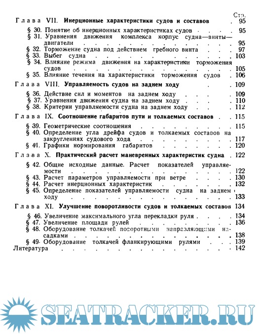 Год выпуска: 1967 Язык: русский Автор: Рыжов Л.М., Соларев Н.Ф. Жанр: Учебное пособие Издательство: Транспорт Формат: DjVu Качество: Отсканированные страницы Количество страниц: 146 Описание: Настоящая книга — первая попытка создания учебного пособия для студентов судоводительской специальности вузов МРФ по разделу «Маневренность речных судов и составов», который составляет основную часть дисциплины «Судовождение на внутренних водных путях». В этом пособии освещены вопросы определения сил и моментов, действующих на корпус, рули и движители при криволинейном движении судна, даны методы расчета основных элементов маневренности — поворотливости, устойчивости на курсе, управляемости при ветре, инерционных характеристик и т. д. Книга может быть полезна также всем работникам, связанным с обеспечением безопасности плавания, при оценке правильности выбора судоводителями различных маневров. Наконец, она заслуживает внимания каждого, кто интересуется теоретическими или практическими вопросами судовождения.