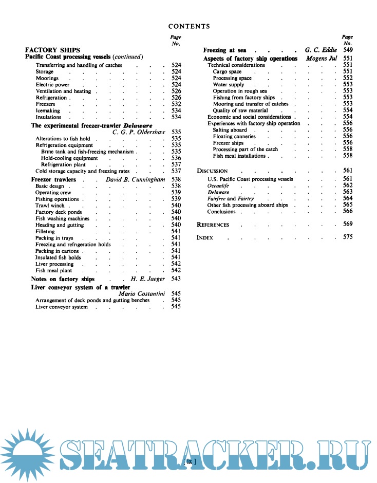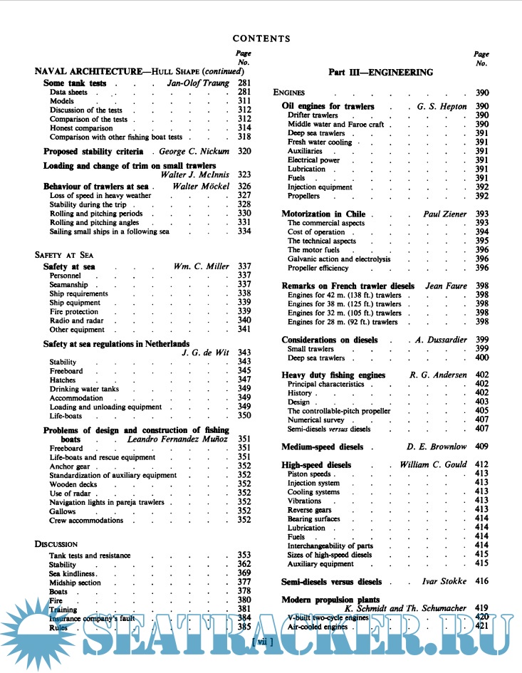 Year: 1975 Language: english Author: Jan Olof Traung Genre: Technical book Publisher: Fishing News Books Limited Format: PDF Quality: Scanned pages Pages count: 607 Description: This is the first of three volumes, covering types of boats for various fishing methods, combined fishing and research vessels, marine architecture with regard to hull shape and safety at sea, engines, propulsion systems, control devices and deck equipment, factory vessels. The books are based on the International Fishing Boat Congress of the Food and Agriculture Organization in Paris and Miami.
