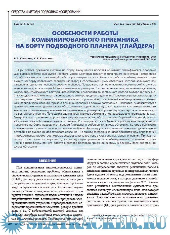 Особености работы комбинированного приемника на борту подводного планера (глайдера)