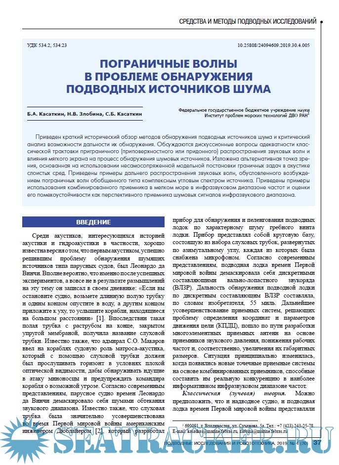 Пограничные волны в проблеме обнаружения подводных источников шума
