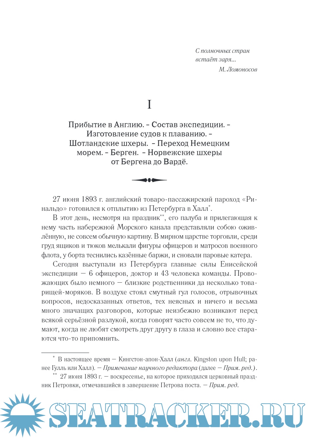 Описание: Книга посвящена истории Енисейской экспедиции 1893 г. – плаванию двух пароходов и баржи из Англии в устье Енисея. На небольших судах в Сибирь были доставлены рельсы, необходимые для постройки Транссибирской магистрали. Русским морякам удалось совершить ряд открытий и существенно уточнить морские карты. Плавание имело государственное и научное значение. Суда шли под Андреевским флагом, который не появлялся в этих водах с середины XVIII в. Одним из главных результатов экспедиции стало подтверждение факта, что морской путь в Енисей из Европы доступен в определённое время года. Экспедиция дала толчок к дальнейшим исследованиям, и к 1904 г. гидрографами Российского императорского флота было составлено подробное описание обширного района от Югорского Шара до Енисея. Этой интересной, но полузабытой странице истории флота и освоения Арктики посвящена книга Владимира Ивановича Семёнова (1867–1910) – участника событий, моряка-писателя, работами которого зачитывалась дореволюционная Россия. Книга переиздается впервые с 1910 г.