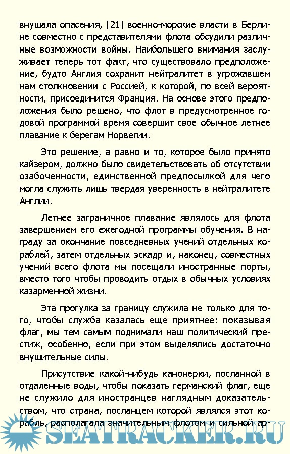 Описание: Мемуары адмирала Рейнгарда фон Шеера (1863—1928) рассказывают о действиях военно-морских сил Германии в Первую мировую войну. С начала войны Шеер командовал соединением линейных кораблей, в январе 1916 года он был назначен на пост командующего Флотом Открытого моря, в мае того же года руководил германскими силами в знаменитом Ютландском сражении, а позже стал “отцом” стратегии неограниченной подводной войны. Написанные вскоре после окончания войны, воспоминания командующего германским флотом отражают немецкую точку зрения на ход и итоги морского противостояния Британии и Германии.