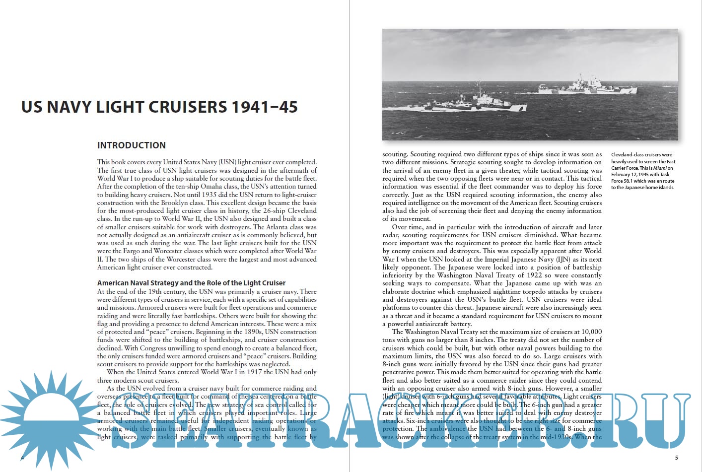Year: 2016 Language: English Author: Mark Stille Genre: History Publisher: Osprey Publishing Edition: New Vanguard, 236 Format: PDF Quality: eBook Pages count: 52 Description: During World War II, the United States built 72 light cruisers of various classes. In response to the severe air threat that surface ships faced, new cruisers were designed with increasingly heavy antiaircraft weaponry as well as the traditional six-inch guns. With the speed and range to keep up with aircraft carriers, and their considerable antiaircraft capability, they were a mainstay of the carrier escorts. This book examines every US light cruiser produced, including those of the Fargo and Worcester classes--which were actually completed after World War II had ended--tracing their design, development, and evolution throughout the war and beyond.