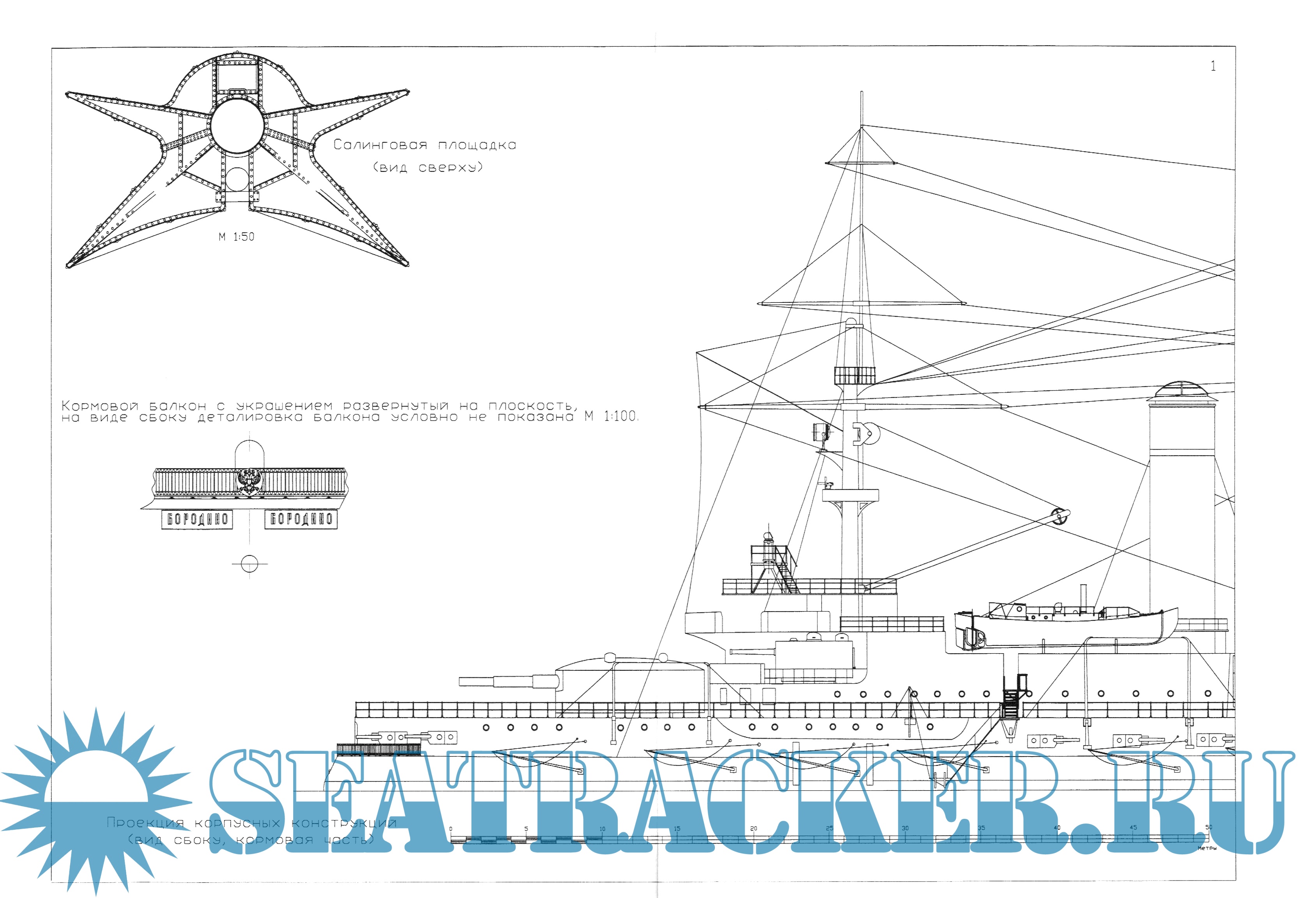 Описание: 14 листов чертежей эскадренного броненосца "Бородино"