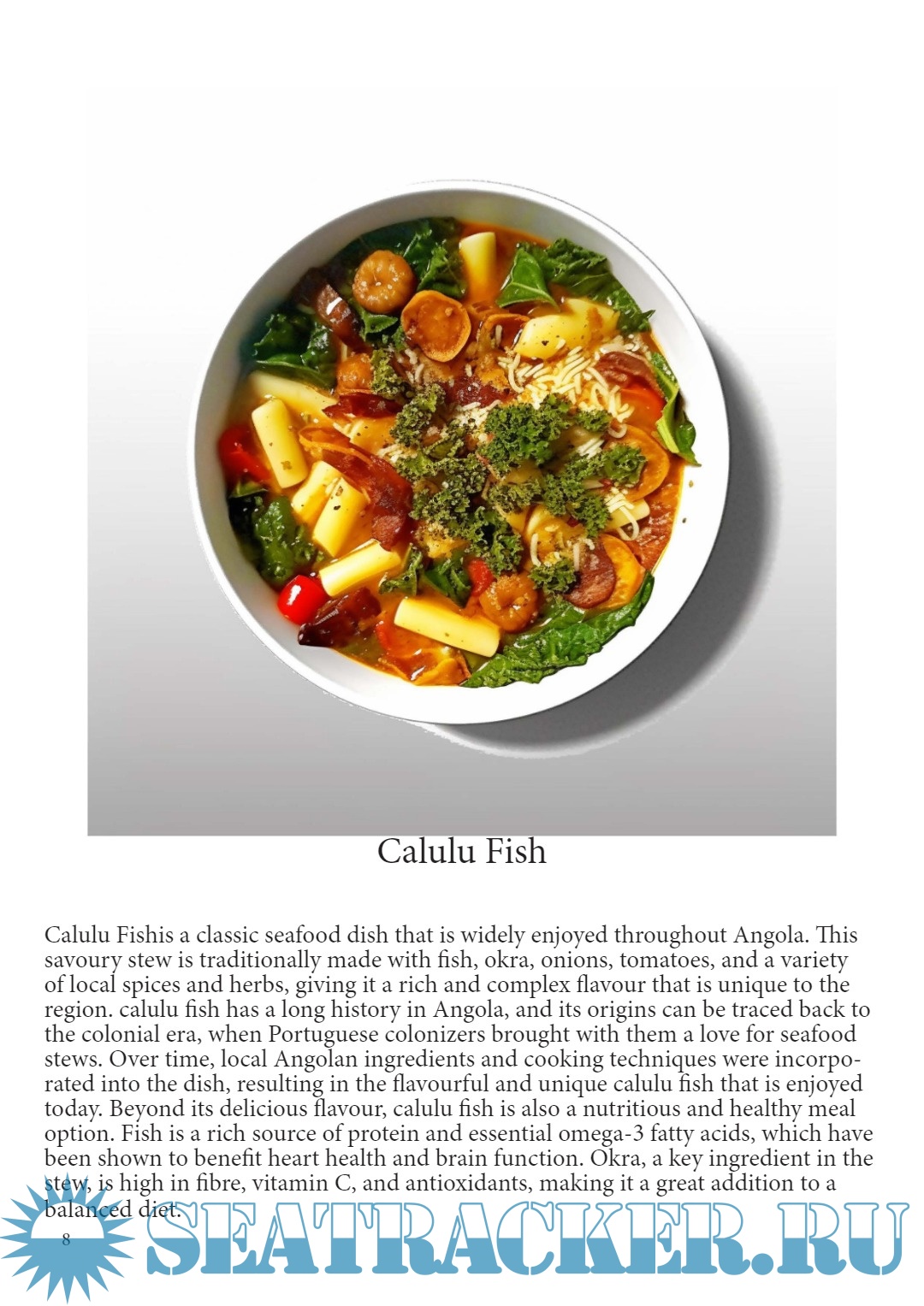 In this cookbook, we invite you to explore the rich flavors and unique cooking techniques of Angolan seafood dishes. From grilled prawns to fish stews, each recipe in this book is a celebration of the country’s culinary heritage and reflects the influence of Portuguese, African, and Brazilian cuisine.