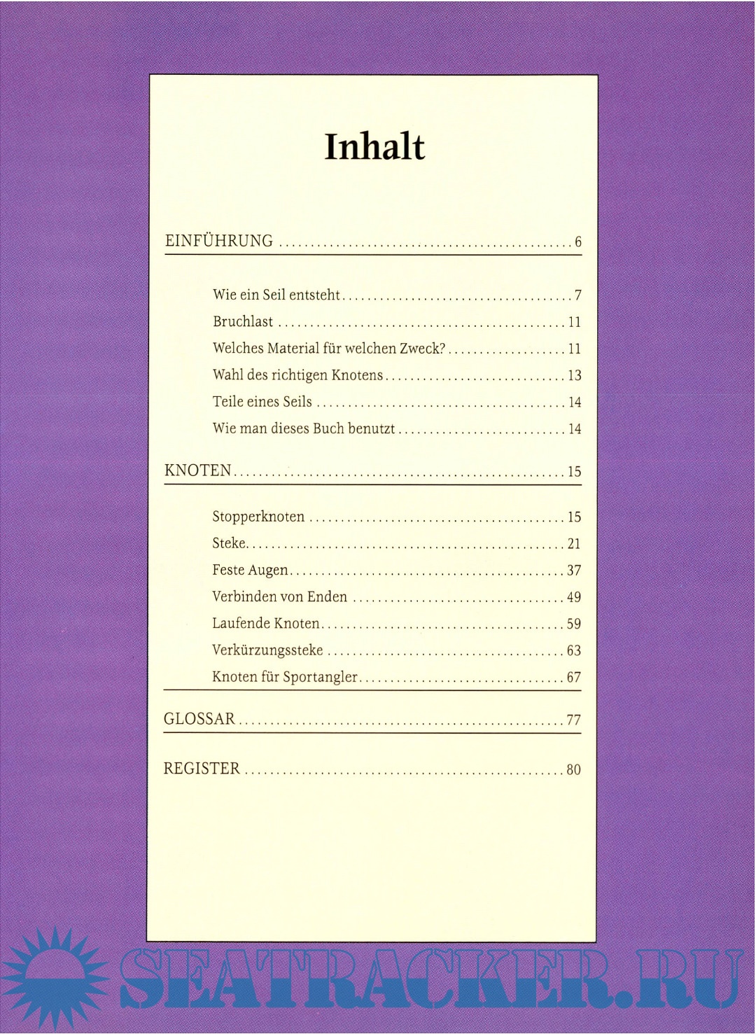 Year: 2008 Language: German Author: Owen P. Genre: Manual ISBN: 978-3-7688-0976-4 Format: PDF Quality: eBook Pages count: 82 Description: Der richtige Knoten für den richtigen Zweck – mehr als 50 Knoten sind in diesem Buch dargestellt, in farbigen Sequenzen un din sinnvollen Gruppen: Stopperknoten, Steke, Verbinden von Enden, Verkürzungssteke, feste Augen. Piktogramme verdeutlichen auf einen Blick, für wen der jeweilige Knoten geeignet ist, den Segler oder den Angler, den Bergsteiger oder Camper.