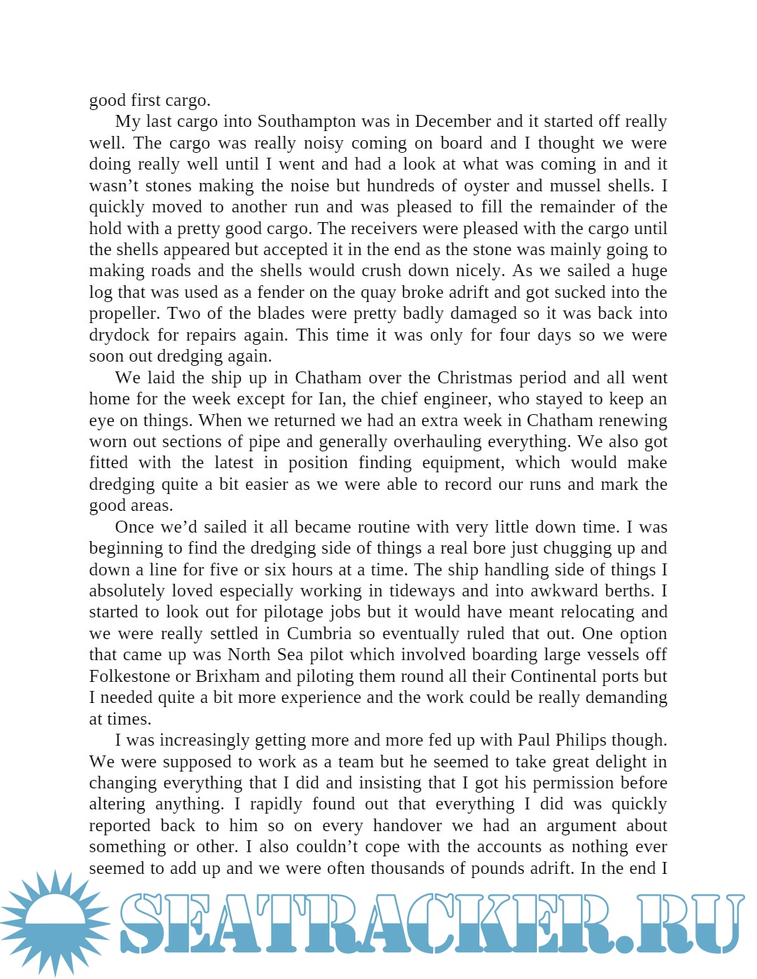Year: 2015 Language: English Author: Bob Jackson Genre: Other Edition: Kindle Format: PDF Quality: eBook Pages count: 223 Description: After twenty years at sea, Bob Jackson is now master. These memoirs take him from enjoying the odd cold beer sailing peacefully across the Indian Ocean to being trapped in a war zone. Here he sees life at sea changing from the leisurely days of general cargoes to the hectic computerised containerships. He seems to have done it all – rescuing drug runners from the ice, dredging aggregates in the North Sea and finally skippering a ‘steamer’ on a tranquil lake. This volume is the second of Bob’s memoirs covering his service as master on a wide variety of ships. The first book ‘I think I’ll go to sea’ relates to his experiences climbing up through the ranks. In this book he has to flee the USA to avoid arrest for drug smuggling, assists rescuing a ship’s crew when their ship sinks in pack ice and gets stuck in the middle of the Iraq/Iran war. He also experiences alcohol free ships which take away the pleasure of his ‘cold beer’