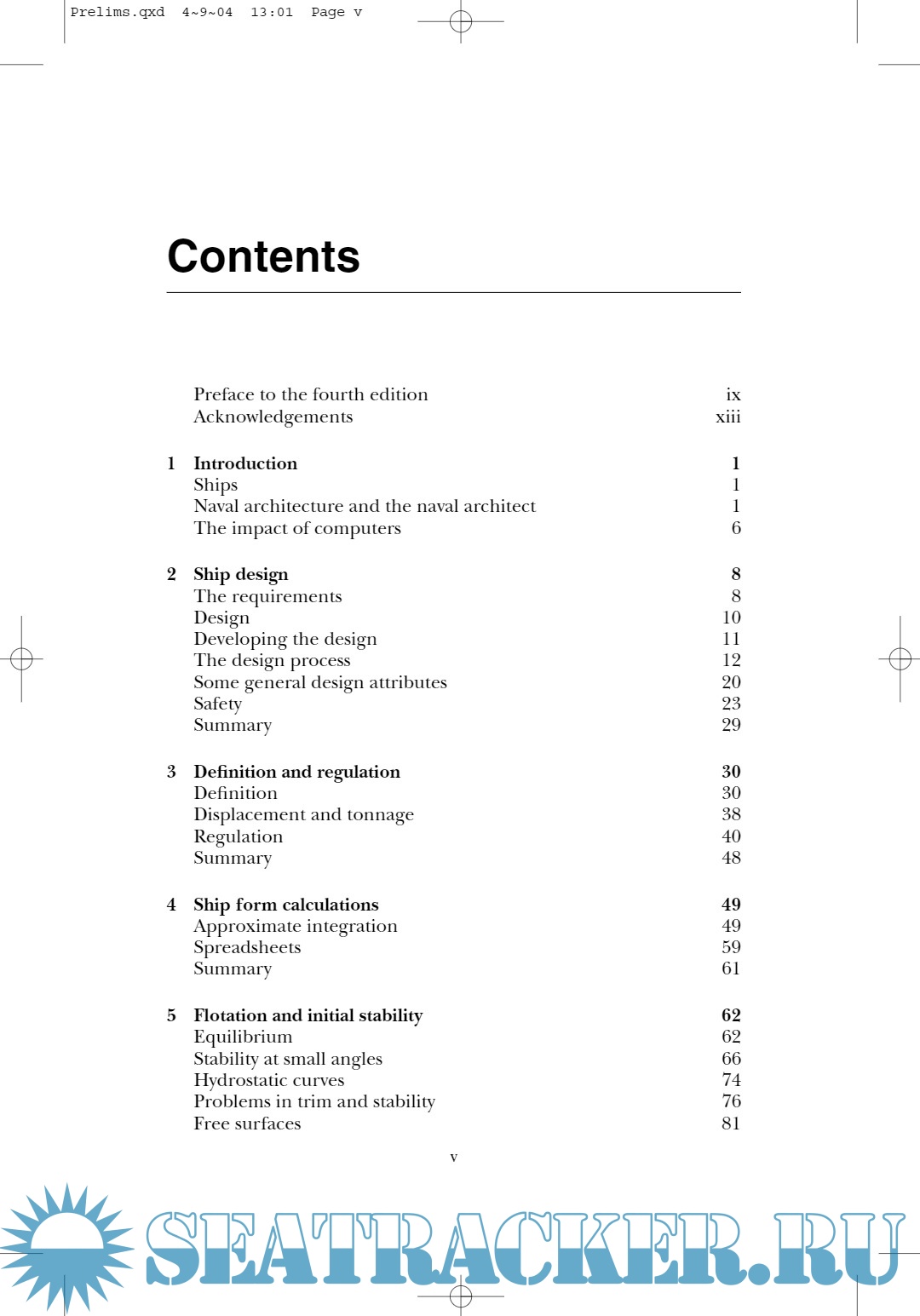 It is hoped that these changes will make the book more suitable for those who need only a relatively simple introduction to naval architecture and will provide a better understanding for those students who do not find mathematical equations easy to interpret. In any case the mathematics cannot, in a book at this level, be rigorous. Even with advanced texts and research papers, simplifying assumptions are often necessary. For instance, problems are often treated as linear when, in reality, many aspects of a ship’s behaviour are non-linear. The book should also help an experienced person refer quickly to the main factors to be considered in common situations.