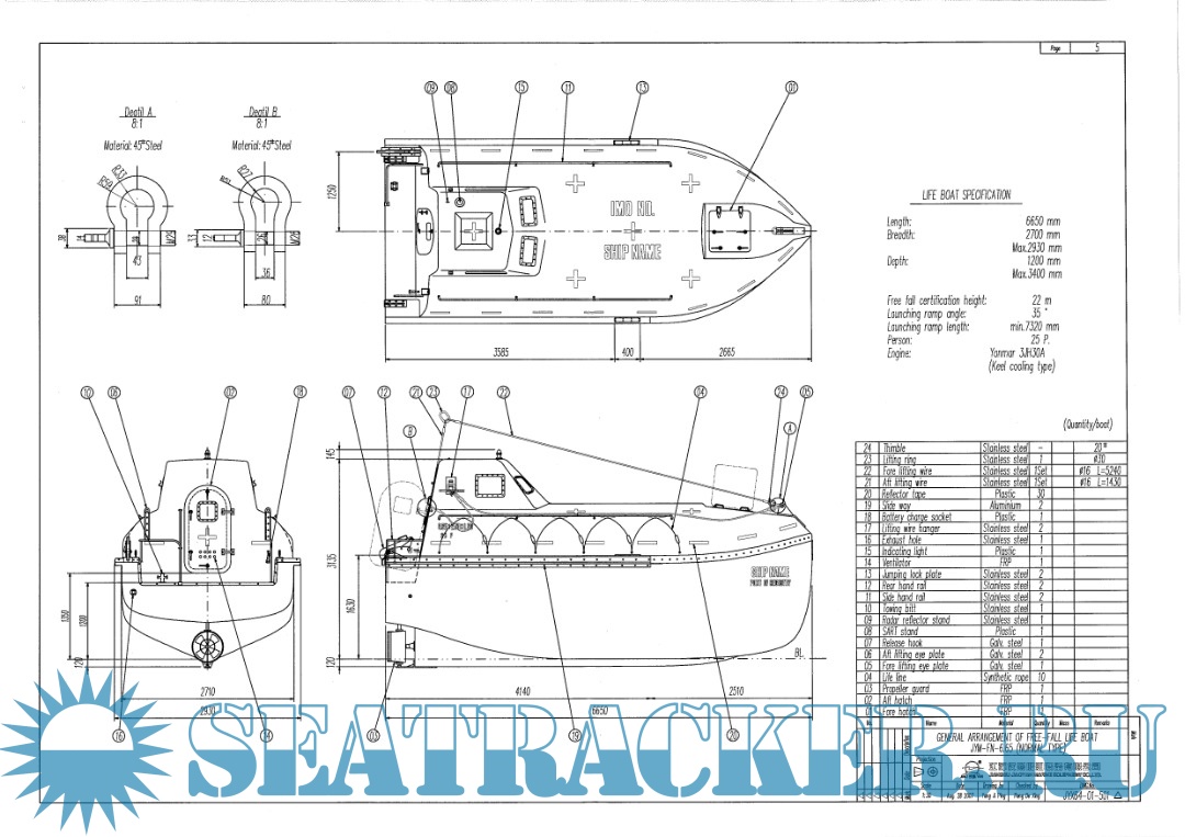 General arrangement of free-fall life boat Jym-fn-6.65 (Normal type).