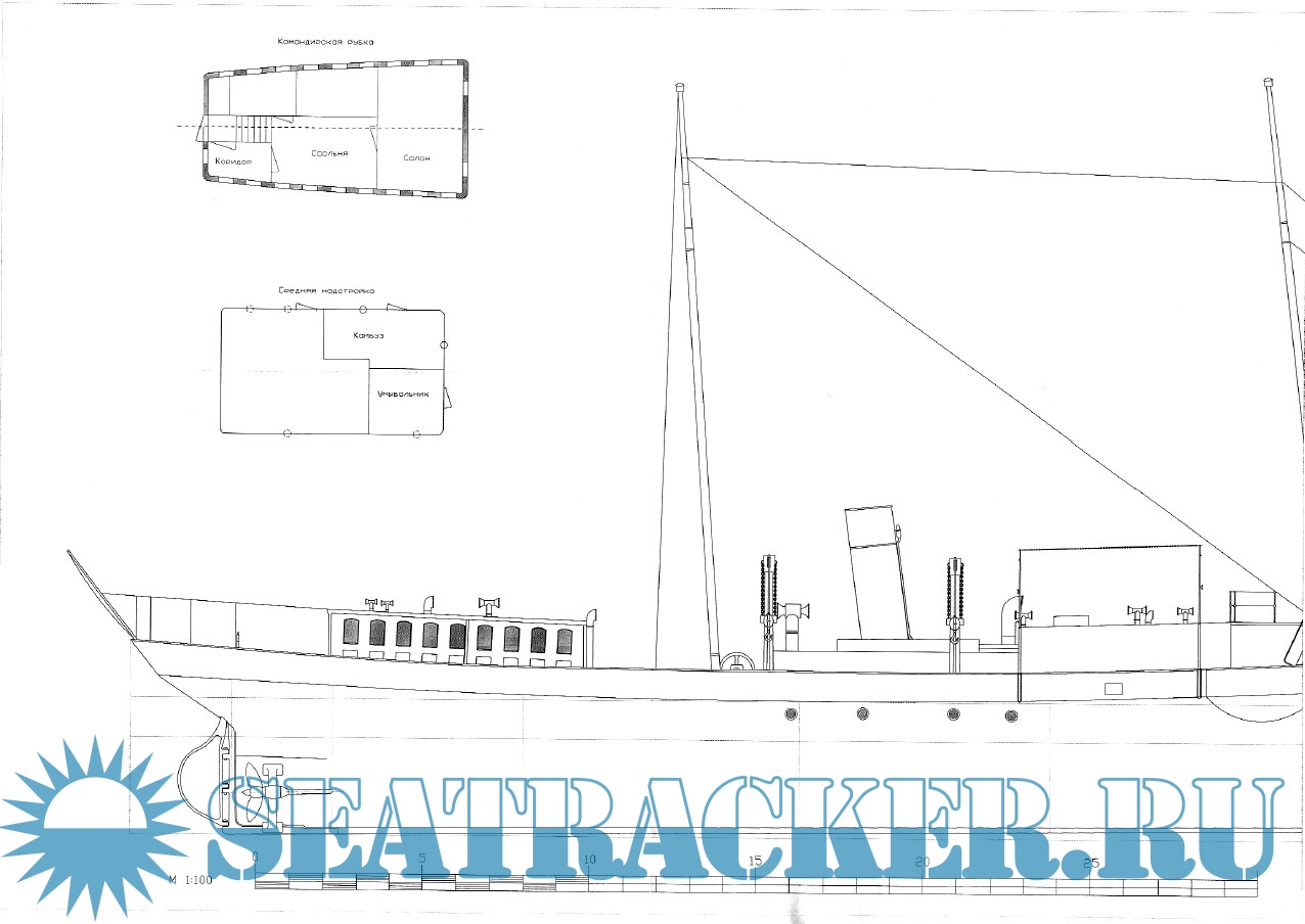 Чертёж моторного крейсера пограничной службы ЯСТРЕБ 1912 год