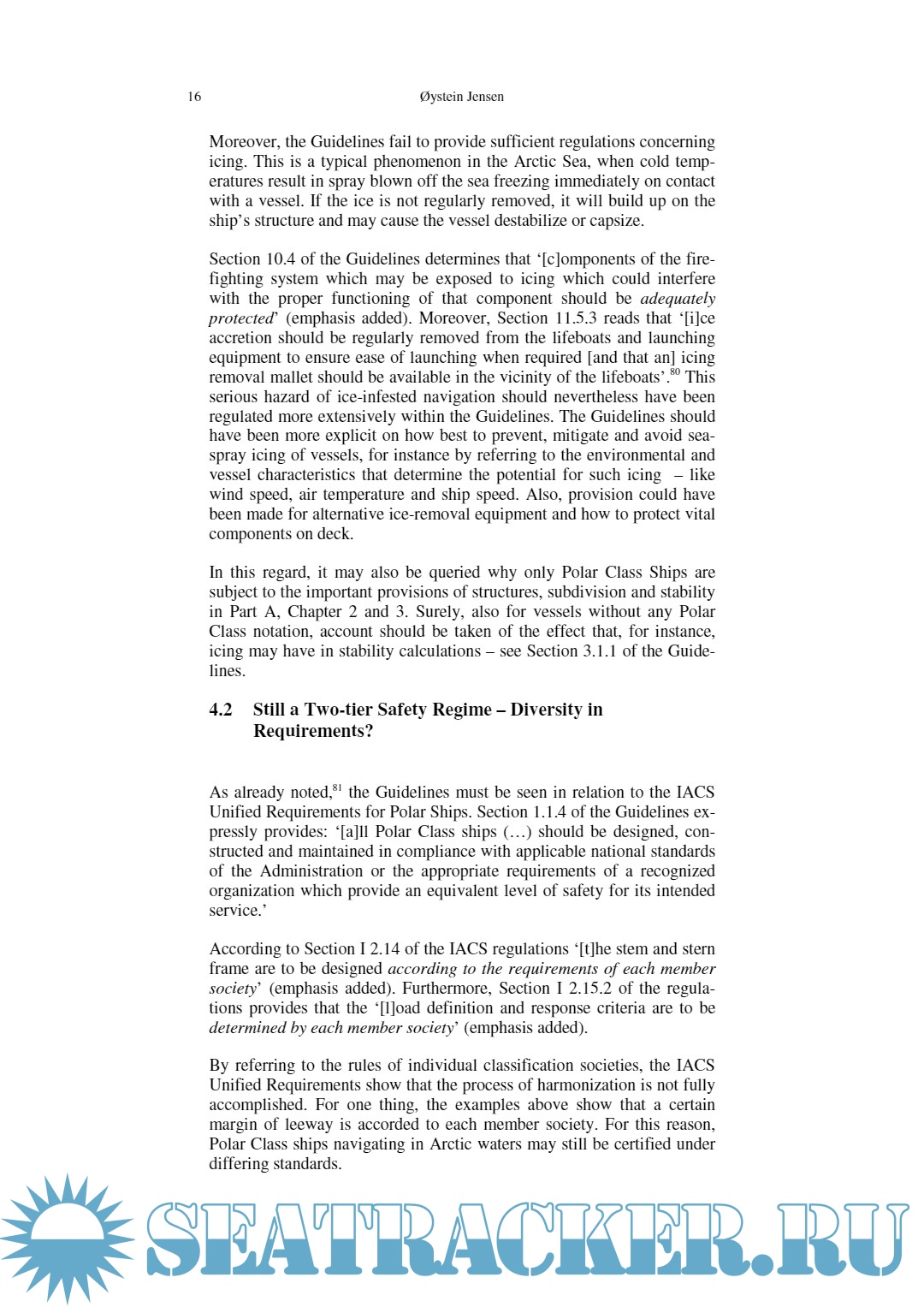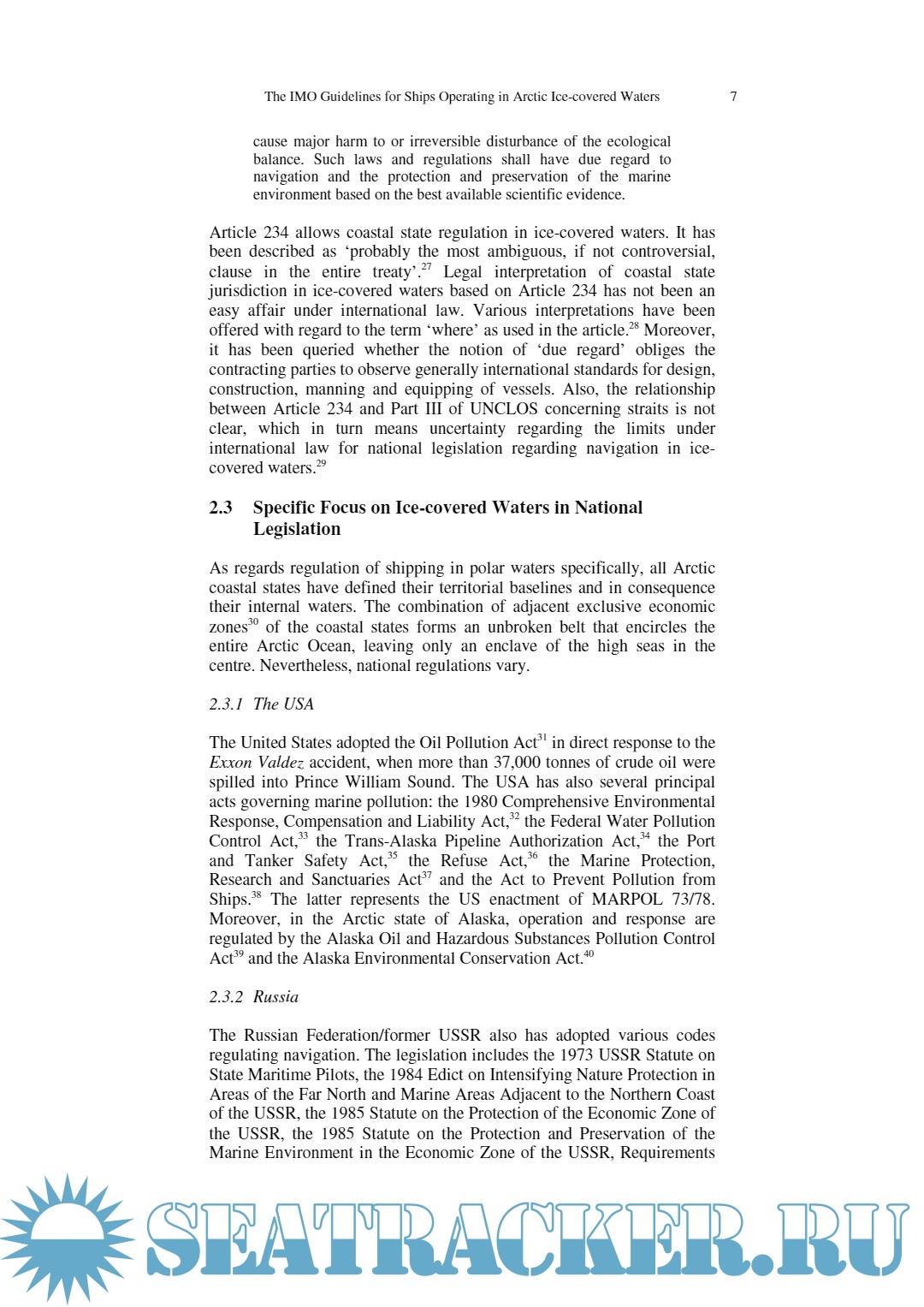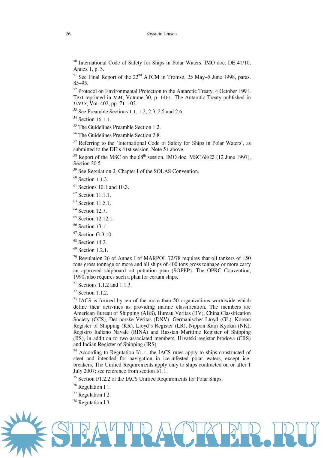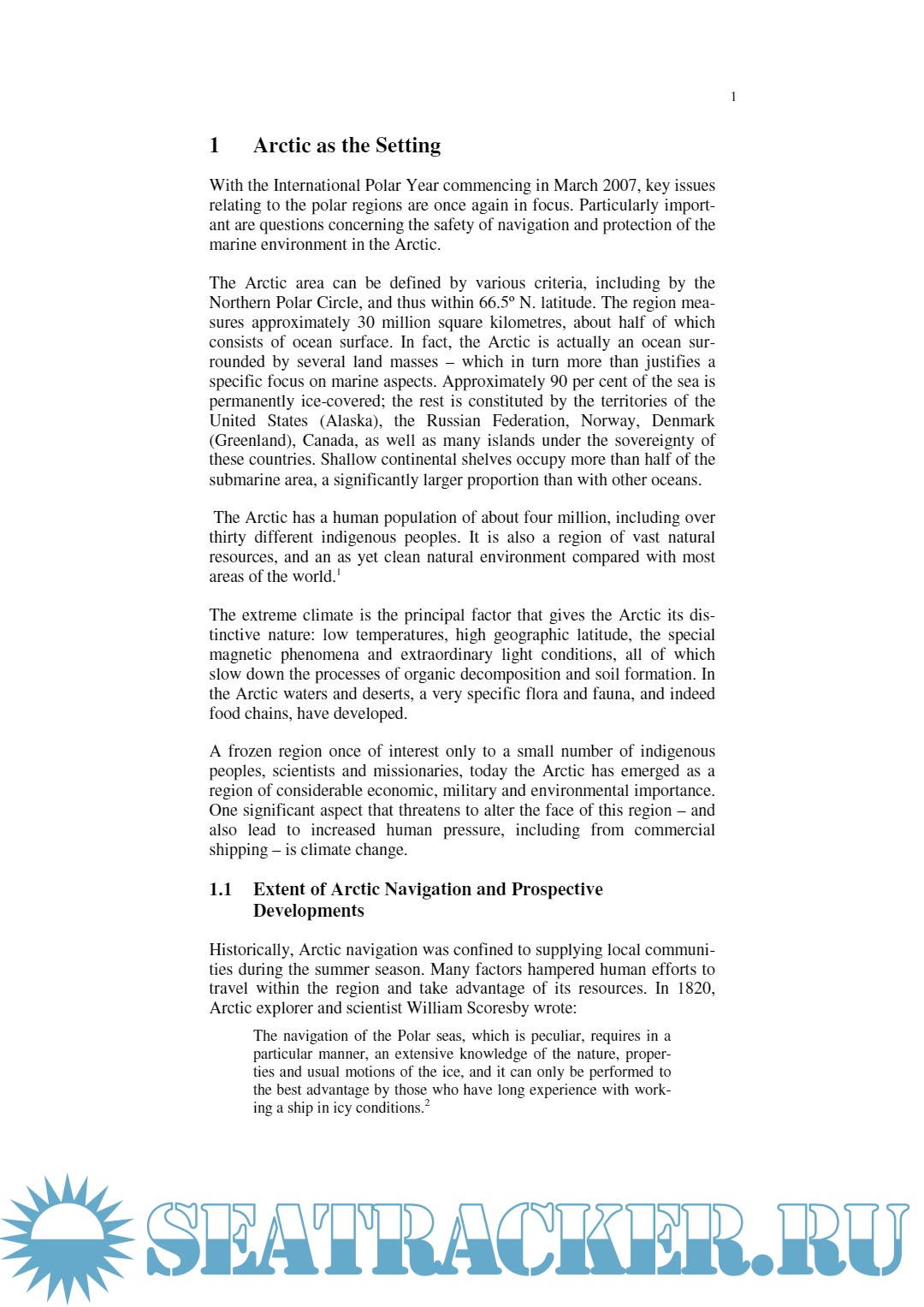 Year: 2007 Language: English Author: Øystein Jensen Genre: Reference book Format: PDF Quality: eBook Pages count: 43 Description: This report explores whether there is a need for strengthened and binding shipping regulations for the safety of navigation and protection of the Arctic marine environment. The various maritime, geopolitical and legal issues raised by the IMO Guidelines for Ships Operating in Arctic Ice-covered Waters are analyzed and discussed. Following an introduction of navigational and legal issues within the Arctic context, the report explores key elements and structure of the Arctic Guidelines, the roles of the governments, the IMO and classification societies in the law making process and any shortfalls of the current arrangement. The possible relevance for the Antarctic is also discussed. The key repercussions of a binding legal regime are then presented, while a separate section is devoted to recom mendations on the subject.