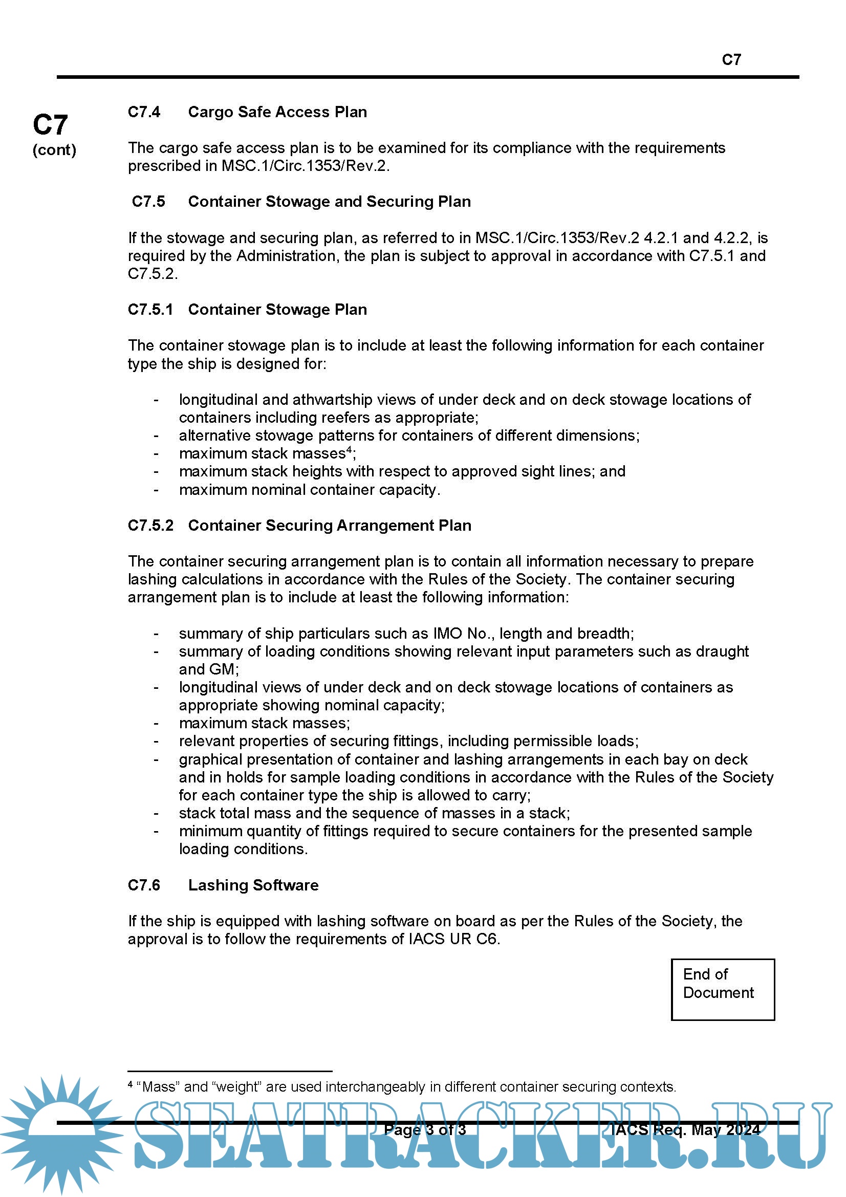 UR C7 defines a comprehensive scope of approval and/or certification for container securing system, encompassing fixed and portable container securing fittings, arrangement plans, drawings of container supporting structures, and cargo safe access plans.