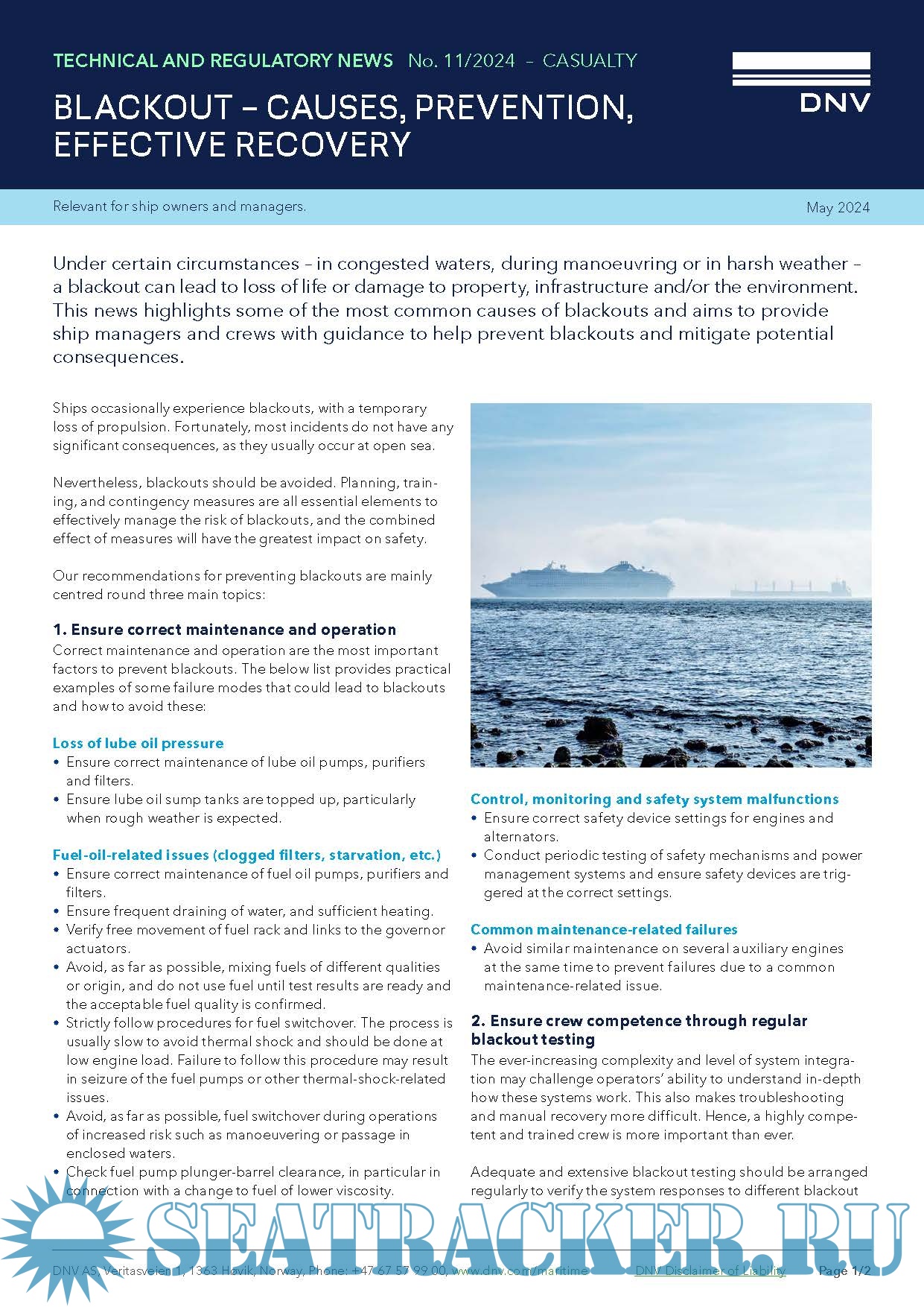 ship managers and crews with guidance to help prevent blackouts and mitigate potential