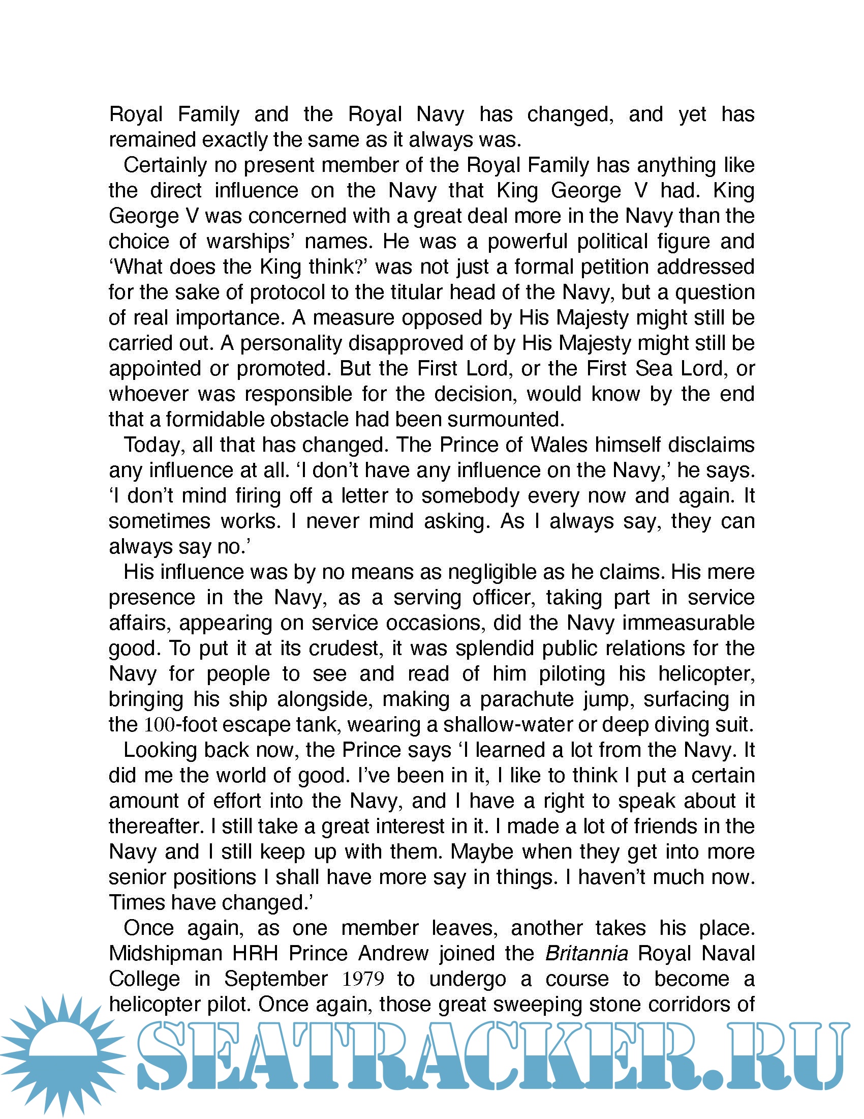 Year: 2023 Language: English Author: John Winton Genre: Textbook Publisher: Sapere Books Edition: 1st ISBN: 9781800557550 Format: EPUB Quality: eBook Pages count: 138 Description: In Captains and Kings John Winton chronicles the rich and varied careers of four generations of Royal naval officers between 1901 and 1981, from King George V, who regarded the Navy as the very best kind of early training in character and discipline for any boy and especially for a prince, through to Charles, the future King Charles III, who trained as a naval helicopter pilot and later took command of the minesweeper HMS Bronington. Along the way are thrilling accounts of naval engagements, including Prince Philip’s dramatic role in charge of the searchlight aboard the battleship HMS Valiant during night action off Cape Matapan in 1941, for which he was mentioned in despatches. As First Lieutenant of the destroyer HMS Whelp, the Duke of Edinburgh was present in Tokyo Bay when Japan formally surrendered to the Allies on 2 September 1945.
