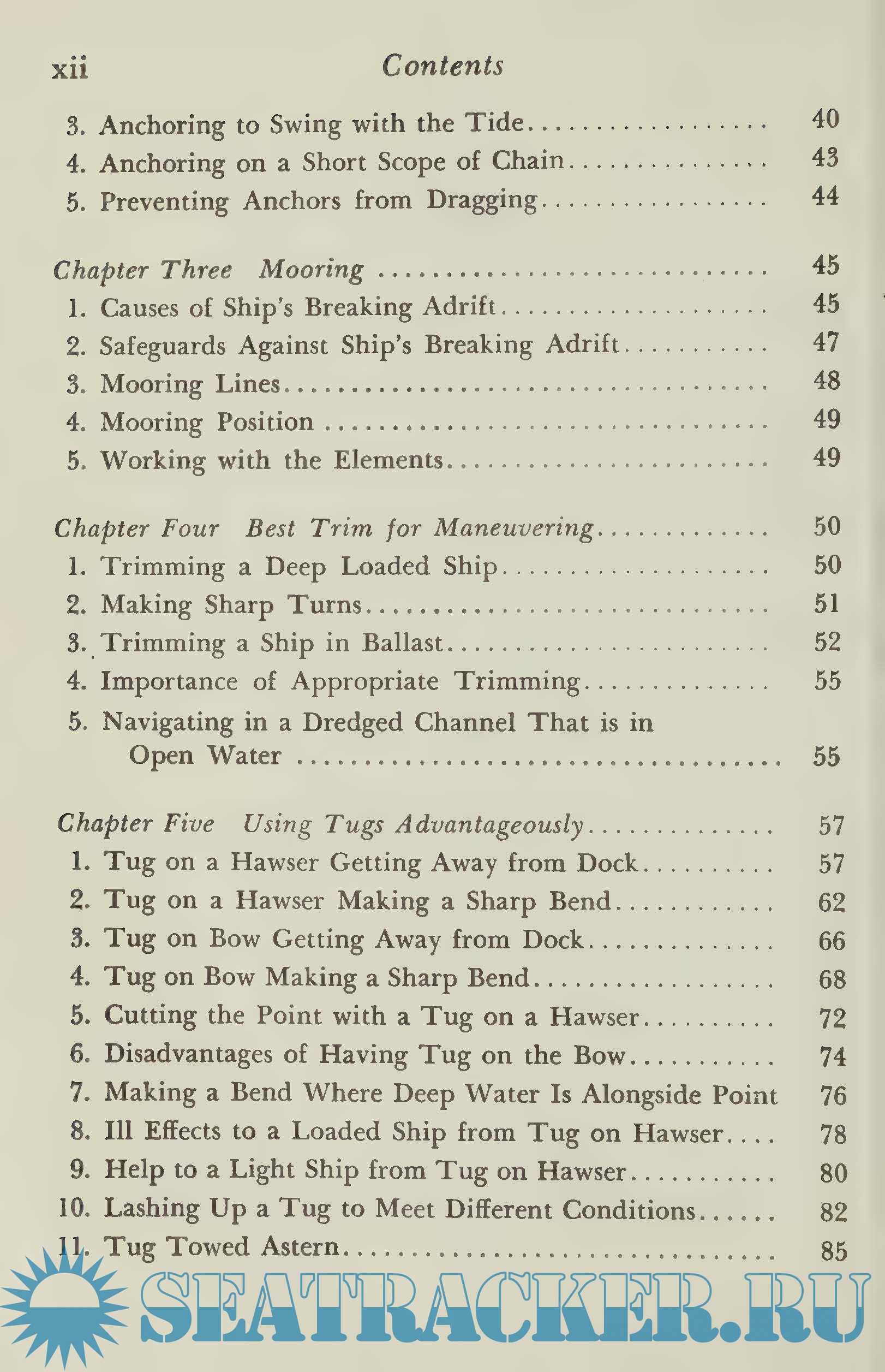 Year: 1978 Language: English Author: Carlyle J. Plummer Genre: Practical guide Publisher: Cornell Maritime Press Edition: Enlarged Third Edition ISBN: 08703382473 Format: PDF Quality: OCR without errors Pages count: 167 Description: The problems which arise when a large ocean-going vessel is taken into shallow, narrow waters are answered in this book from the author's years of experience as Pilot and Ship's Officer. His practical instructions will be invaluable to Junior Officers, as well as to experienced Pilots of large ships or harbor craft. Many of the facts explained and illustrated here appear in print for the first time. Navy and USMS Officers, and licensed Pilots of ships of any size will profit by the discussions of how to keep in a straight reach of a narrow channel with shoal water on each side; of how to make a bend during fog and darkness or in waters where, because of wartime rules, range and buoy lights are extinguished and day marks have been removed. Illustrated.