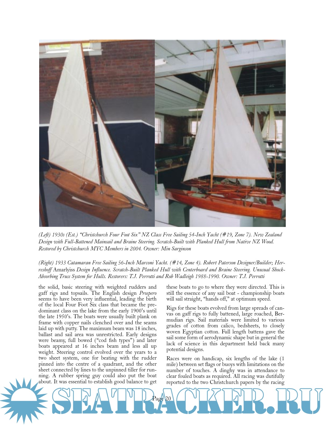 Bill Daniels’ 1905 method of calculating static hull balance for his XPDNC model showed designers how to produce a hull that did not yaw when it heeled, a technique extended by Admiral Turner’s “Metacentric Shelf ” design method, first documented in a 1931 Yachting magazine article on models. In this way, a direct relationship between sailing models and full size yachts has been well documented.