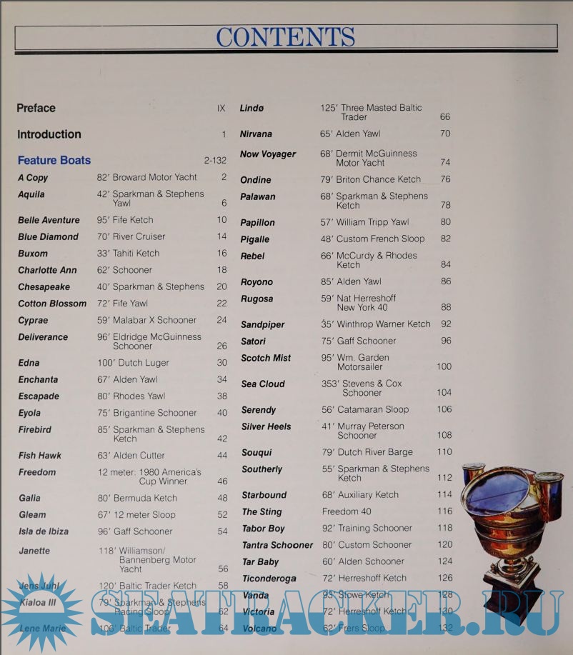 Year: 1982 Language: English Author: Jill Borrow & Dana Jinkins Genre: Technical book Format: PDF Quality: Photos of pages Pages count: 195 Description: 'Classic Yacht Interiors' is the most comprehensive book on the subject to date. Over 120 different yachts (ranging in length from 25' - 353') are represented with superb color photographs and descriptive text. Included are exterior shots, accommodation plans, and separate sections on Main Saloons, Galleys, Heads, Cockpits, and Navigation Areas.