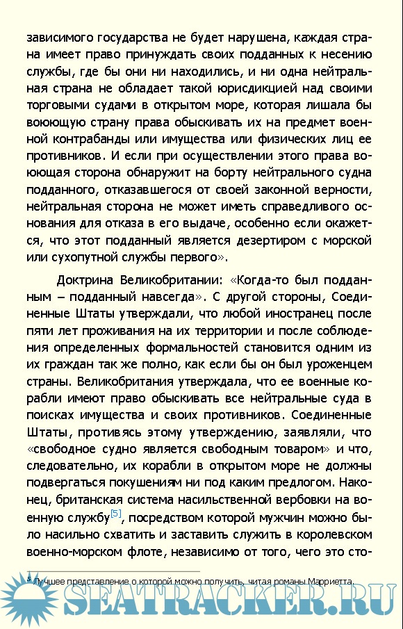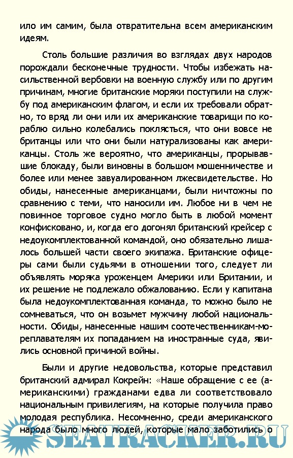 Описание: Приступая к исследованию англо-американской войны на море 1812 года, 26-й президент США Теодор Рузвельт обращает внимание на довоенный политический и социальный климат в Великобритании и в Америке. Кроме того, он дает оценку состоянию армии и флота противников, отмечая неподготовленность Америки к войне. Анализируя сражения в Атлантическом океане и на озерах обеих Америк, Рузвельт сообщает сведения о кораблях - участниках войны, об их оснащении и вооружении, восхищается мастерством и храбростью военных моряков, обсуждает сильные и слабые стороны противников. В своей работе Рузвельт использовал классические труды по истории Британии, американские официальные письма, вахтенные журналы, оригинальные контракты, письма капитанов, высших военачальников, офицеров и другие документы из архивов в Вашингтоне. В результате это исследование до сих пор считается одним из лучших в своей области. Книга снабжена схемами, поясняющими расстановку сил в морских сражениях.