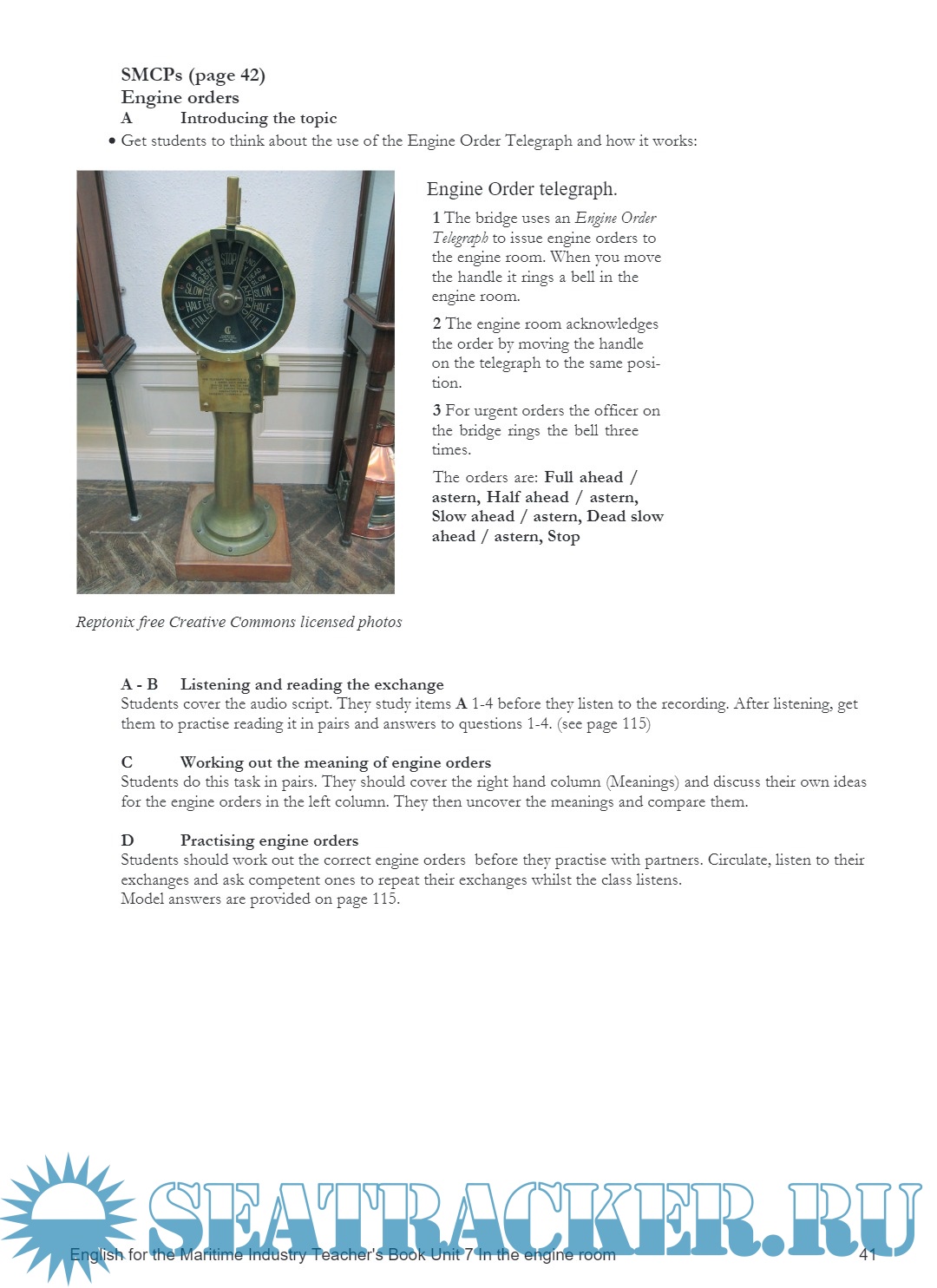 Year: 2014 Language: English Author: Tony Grice Genre: Textbook Publisher: Idris Format: PDF Quality: eBook Pages count: 82 Description: This teacher’s book is written to accompany the English language course book for seafarers English for the Maritime Industry - published by Idris Education (2012). This teacher’s book is free of charge and available in the form of a PDF download from the Idris Education website. The course book English for the Maritime Industry and its accompanying audio CD are not free of charge. They are available to buy from book distributors, book shops and through the website www.idrisconsultancy.co.uk. Answers to all the questions and exercises that appear in the course book are to be found in pages 107 -125 of the course book itself, and the answers are not repeated in this teacher’s book. However, the teacher’s book does contain the following which do not appear in the course book: - Extra teaching suggestions - Background theoretical language notes - Language exercises which are additional to those in the course book - Games, puzzles, role plays and discussions to provide extra speaking practice