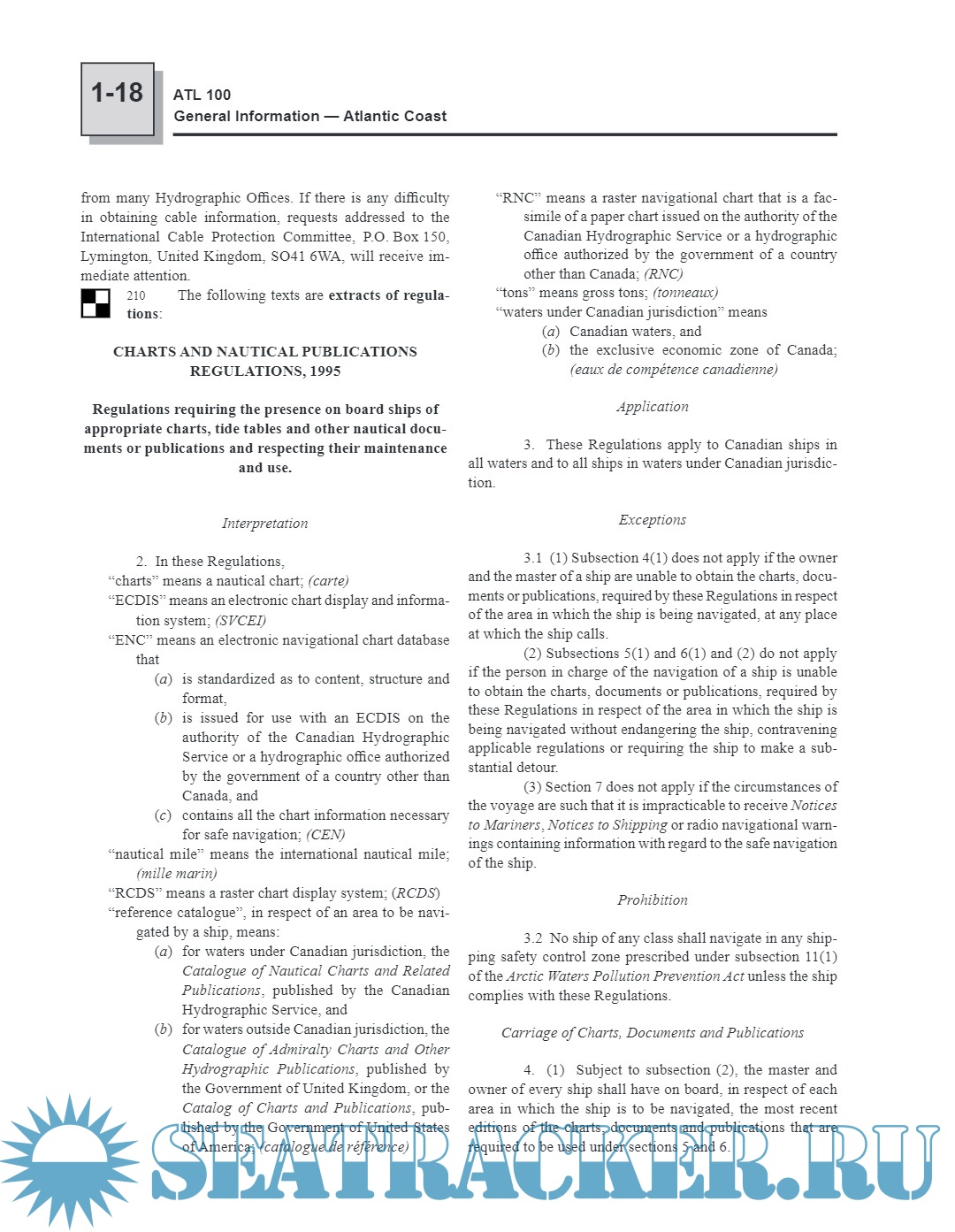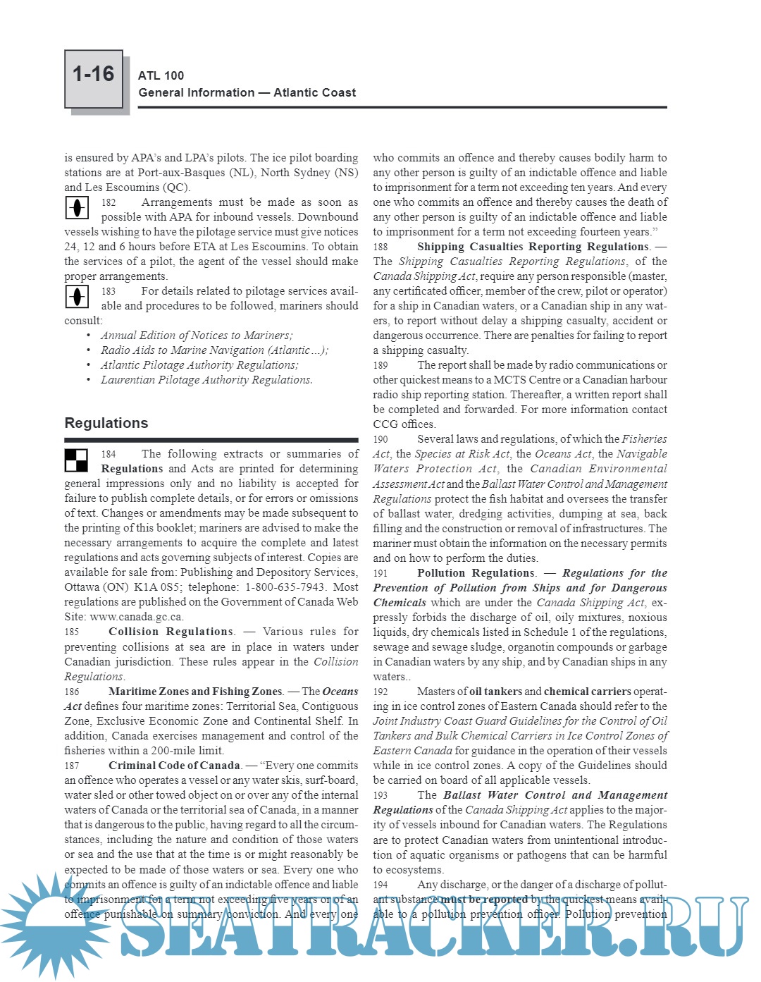 Year: 2018 - 2024 Language: English Author: Canadian Hydrographic Office Genre: Practical guide Format: PDF Quality: eBook Pages count: 86 Description: The zipped folder consists of the following publications from Canadian Hydrographic Office:- 1. Sailing Directions divided into Atlantic, Pacific, Northern and Central Canada Coasts. The Sailing Directions booklets are an indispensable companion to nautical charts. They are a great tool for planning and assisting in navigation because they provide information that cannot be shown on a chart. Each volume includes a new section entitled “Record of Changes” which lists all updates that are incorporated during the current calendar year. 2. Paper Chart Catalogue. The Canadian Hydrographic Service publishes over 900 paper charts which are described in a series of four free chart catalogues for the Pacific Coast, Central Canada, Atlantic Coast, and the Arctic. 3. Chart 1 is a publication containing explanations of the symbols, abbreviations and terms needed to interpret nautical charts published by the Canadian Hydrographic Service. Member nations of the International Hydrographic Organization produce Chart 1 using a common format. That common format consists of sections identified by letters and symbols, abbreviations or terms identified by a reference number. 4. Canadian Atlas of Tidal Currents. Atlas of Tidal Currents present a comprehensive view of the hourly rate and direction of major tidal currents within specific coastal regions of Canada. The Atlases use arrows to indicate the direction and the velocity of surface currents. They are to be used in conjunction with the Canadian Tide and Current Tables provided annually by the Canadian Hydrographic Service. 5. The CCG/6120 - Ice Navigation in Canadian Waters Manual is published by the Canadian Coast Guard (CCG) in collaboration with Transport Canada Marine Safety, the Canadian Ice Service (CIS) of Environment and Climate Change Canada (ECCC) and the Canadian Hydrographic Service of Fisheries and Oceans Canada. The publication is intended to assist vessels operating in ice in all Canadian waters, including the Arctic. This document will provide mariners of vessels transiting Canadian ice-covered waters with the necessary understanding of the regulations, shipping support services, hazards and navigation techniques in ice. Chapter 1, Icebreaking and Shipping Support Services, pertains to operational considerations, such as communications and reporting requirements as well as ice advisories and icebreaker support within Canadian waters. Chapter 2, Regulations and Guidelines provides a summary of information on regulations and guidelines for vessels transiting ice covered waters. Chapter 3, Ice Climatology and Environmental Conditions covers information on the Canadian ice and weather environment. Chapter 4, Navigation in Ice Covered Waters, is instructional in nature, with information provided to help familiarise inexperienced personnel with passage planning, navigation procedures in ice, vessel performance in ice, and other essential operating procedures. Chapter 5,Vessel Design and Construction for Ice Operations provides the mariner with basic information on engineering, hull and auxiliary systems for vessels operating in ice. 6. Radio Aids to Marine Navigation 2024. (Atlantic, St. Lawrence, Great Lakes, Lake Winnipeg, Arctic and Pacific)