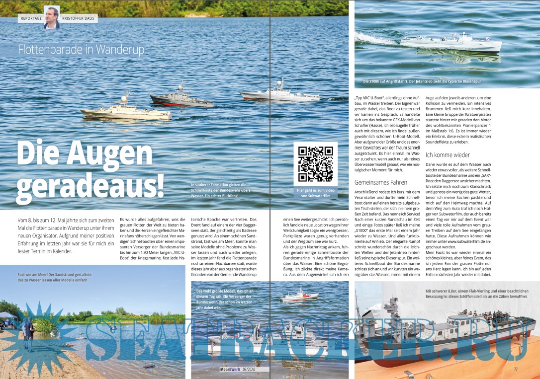 Year: 2024 Language: German Author: Eric Schafenrort (Redaktor) Genre: Periodical (magazine) Format: PDF Quality: eBook Pages count: 84 Description: Das führende Fachmagazin für Schiffsmodellbauer. Egal ob Stand- oder Fahrmodell, ob kleines Segelboot oder gigantisches Kreuzfahrtschiff. Die Modellwerft informiert über Neuheiten, hilft mit Bautipps und fasziniert mit besonderen Reportagen.