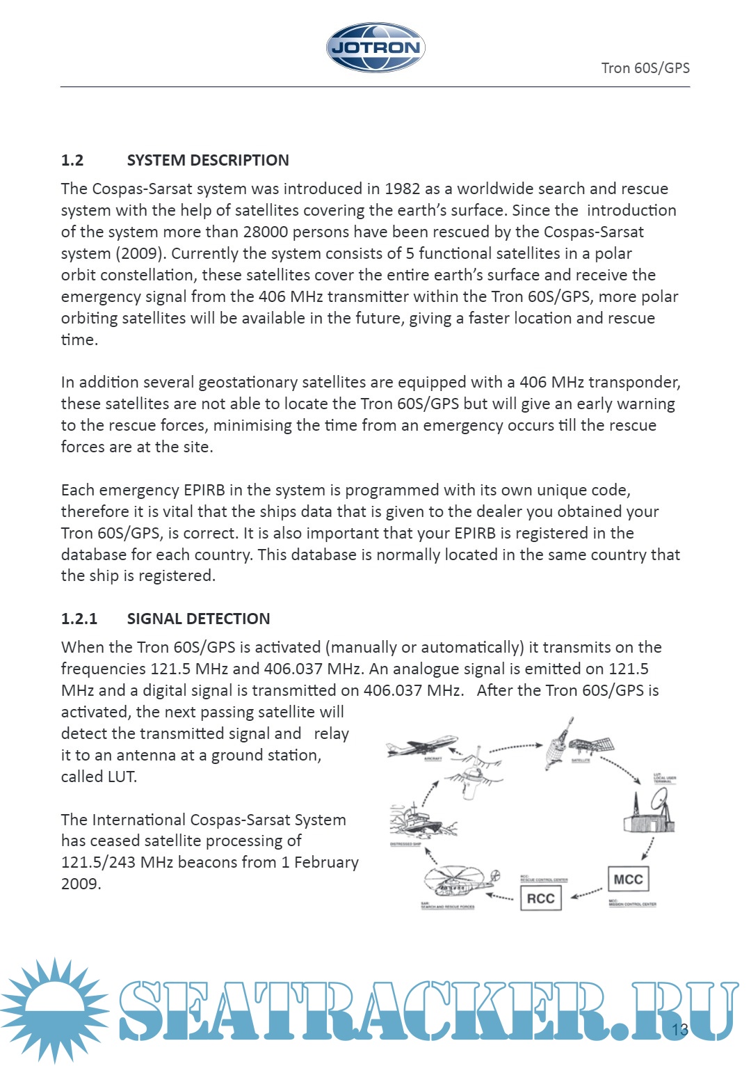 Description: This Operator's manual describes precautions, operations and troubleshooting of Jotron Tron 60 VDR Float Free EPIRB
