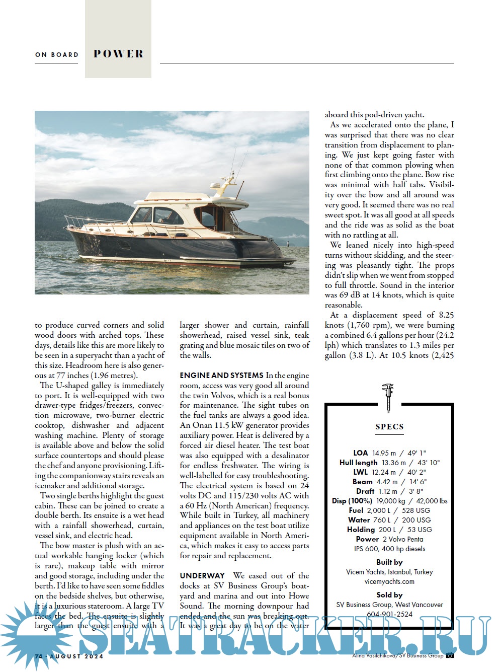 Year: 2024 Language: English Editor: Sam Burkhart Genre: Periodical (magazine) Publisher: Mark Yelic Edition: August 2024 Format: PDF Quality: eBook Pages count: 116 Description: Pacific Yachting magazine has been serving the recreational boating community of B.C. and the Pacific Northwest for over 43 years. Our publication is available in print and digital and offers high-quality, up-to-date content on a variety of boating topics including cruising destinations, safety education, seamanship, maintenance and repairs, do-it-yourself projects, boat and gear reviews, current issues and tons more. Pacific Yachting offers something for every boater—power and sail. We also have a printed and online boaters directory with more than 1,800 marine businesses and services.