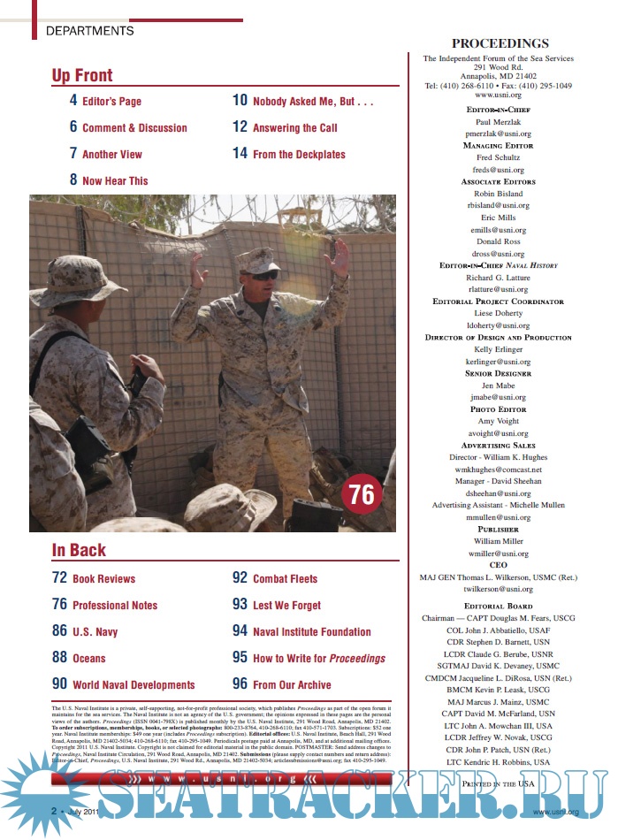 Year: 2011 Language: English Author: USCG Edition: 2011-07 Format: PDF Quality: eBook Pages count: 100 Description: Proceedings of the Marine Safety & Security Council, the Coast Guard Journal of Safety at Sea, is the voice of the Coast Guard’s Marine Safety and Security Council. It began publication in 1944 and, over the decades, has reached an increasing level of recognition among the larger maritime industry and Coast Guard personnel. Currently, over 30,000 copies of Proceedings are mailed out each issue.Proceedings’ audience includes a large segment of the private maritime industry population, including retired officers, fishing vessel captains, river pilots, ocean scientists, marine engineers, tug/tow boat operators, shipping executives, insurance operators, and maritime lawyers. Other subscribers include U.S. Coast Guard and U.S. Navy personnel, mariners, reservists, Departments of Homeland Security and Transportation staff, and allied foreign national readers.The U.S. Coast Guard publishes Proceedings three times a year. Each edition of Proceedings-typically 80 to 100 pages-features a specific theme and is championed by a Coast Guard office, assigned based on the command’s expertise in that area. Recent themes have included: The 21st Century Maritime Workforce; Recreational Boating Safety; Waterways: America's Economic Engine; Safety Management Systems; and Improving Maritime Safety.